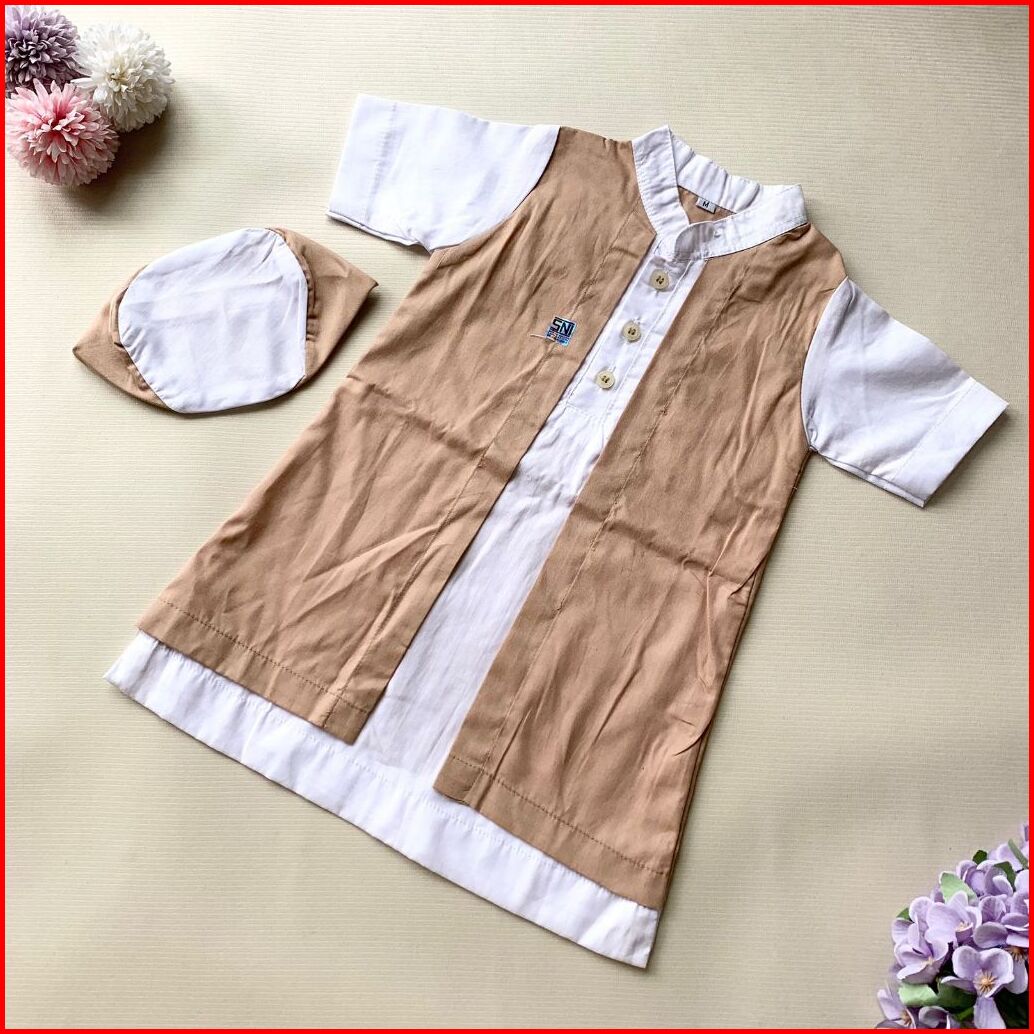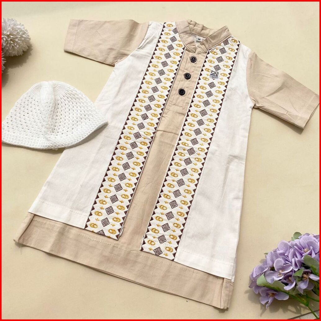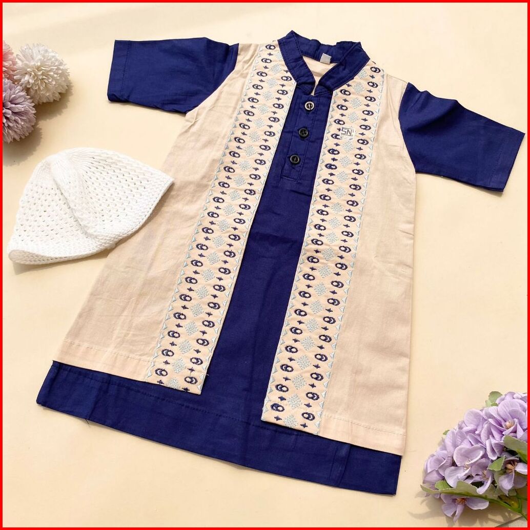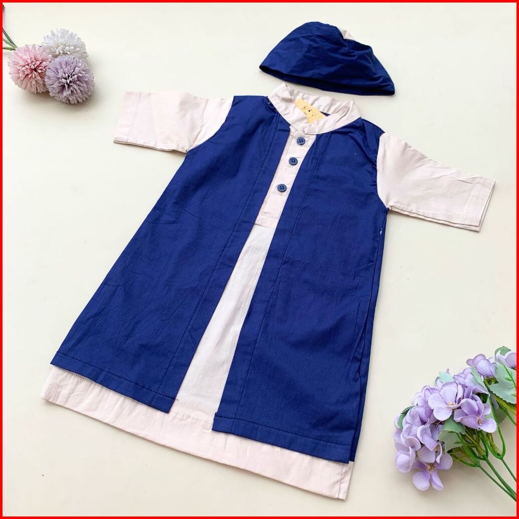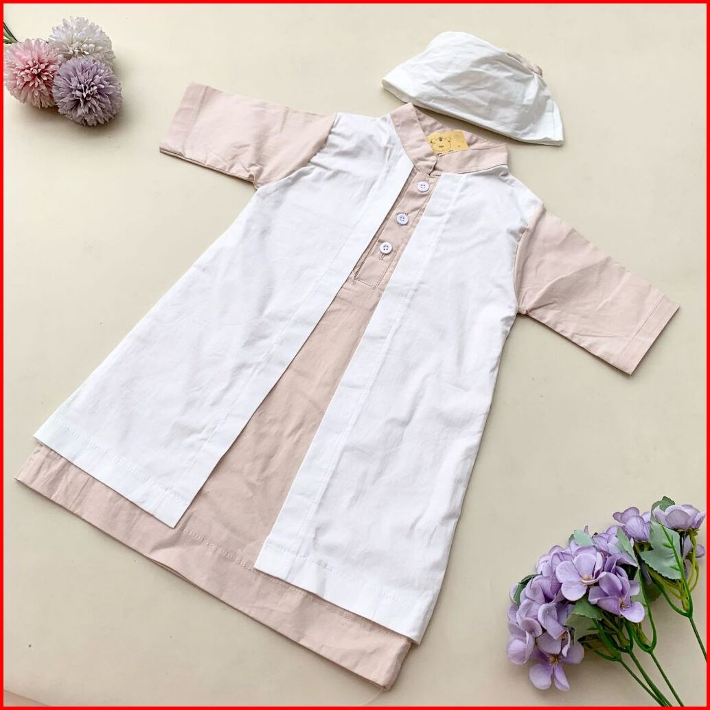 Quebeecloth Baju Koko Muslim Jubah Free Peci Edisi Lebaran Anak Laki-laki Termurah - Kok