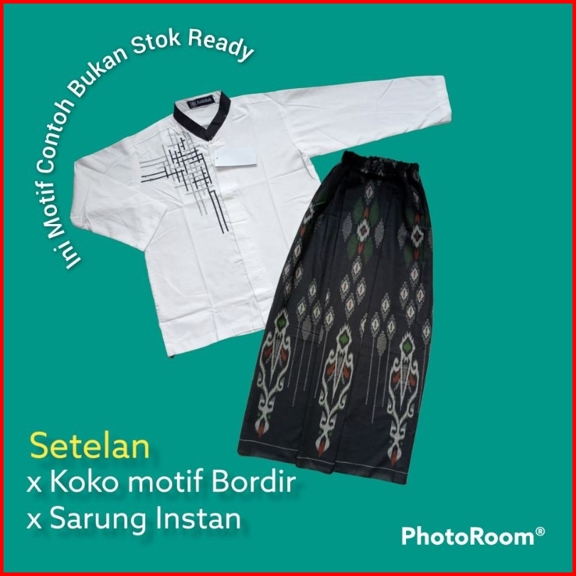 Setelan Koko Putih Lengan Panjang Dan Sarung Anak Kado Khitanan Kado Ulang Tahun.