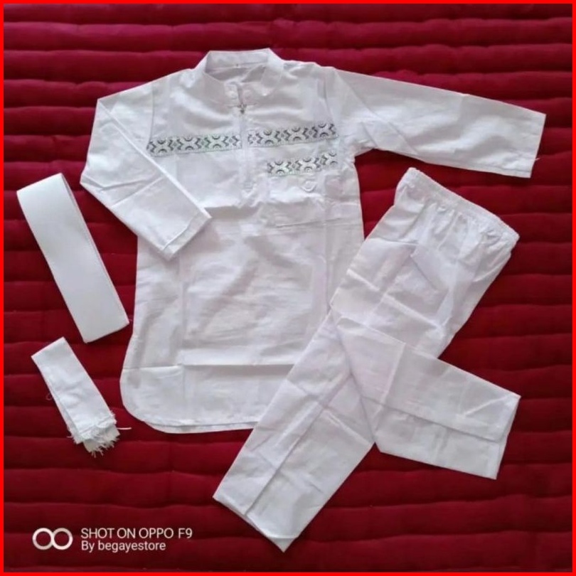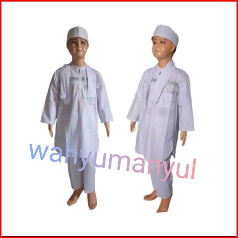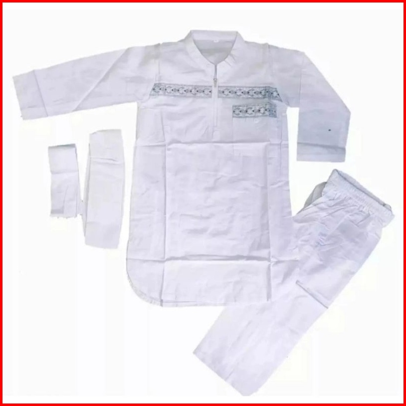 Baju Koko Putih Anak Laki Laki Pakaian Muslim Pakistan Putih Lengan Panjang Usia 4-12 Tahun