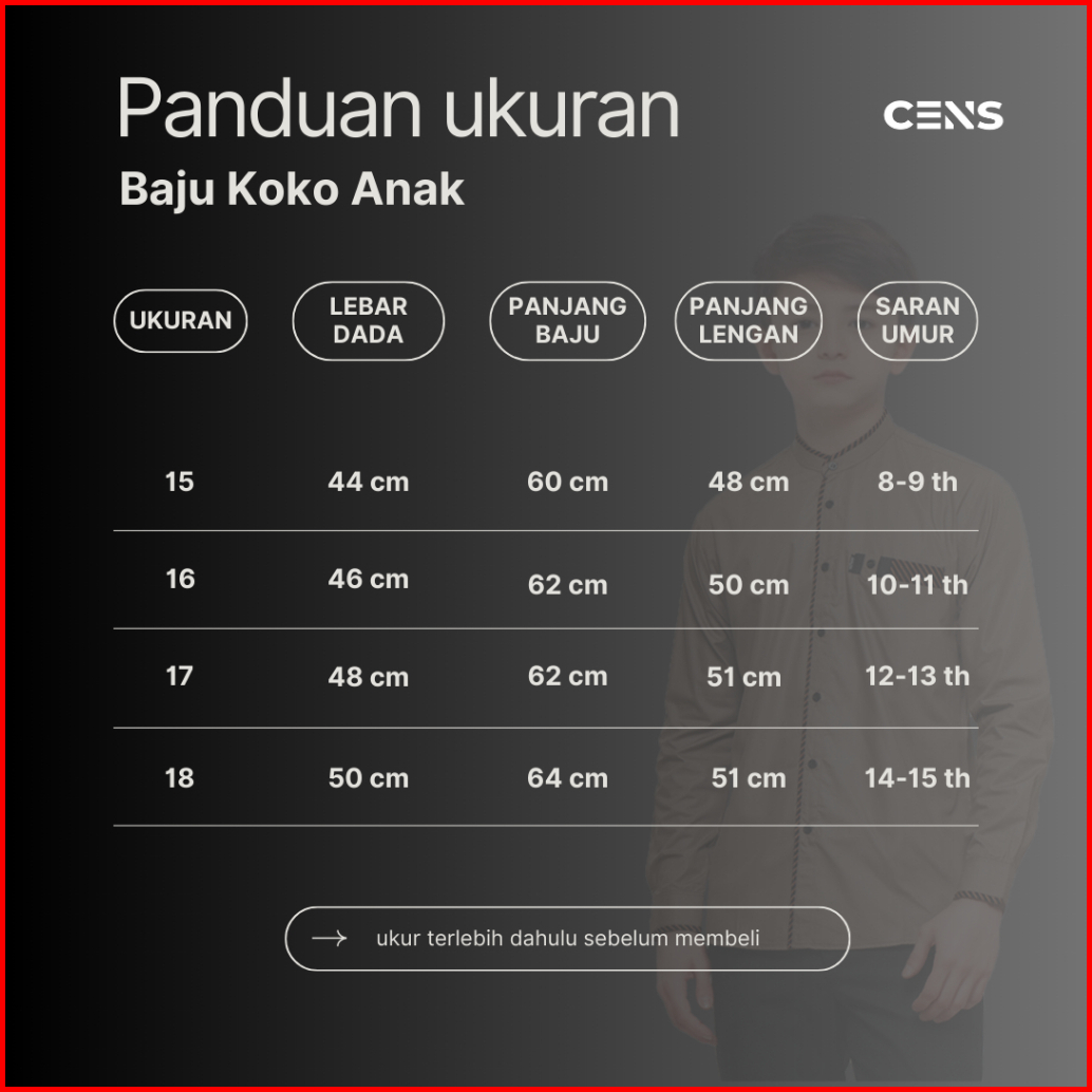 Cens - Baju Koko Anak Lengan Panjang Umur 8-15 Tahun Motif Sandiko Series