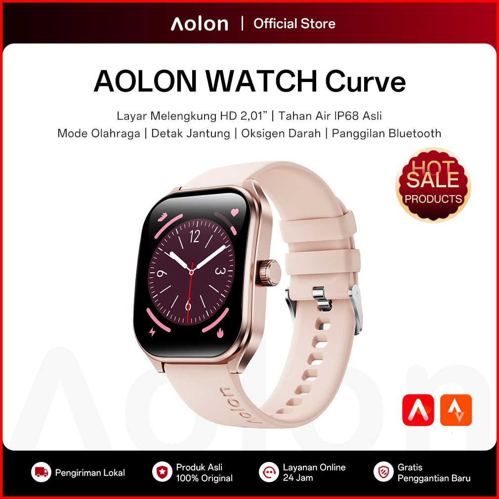 Aolon Curve Jam Tangan Smartwatch Wanita Original Ip68 Waterproof Sports Fitness Tracker Women Monitoring Bluetooth Call