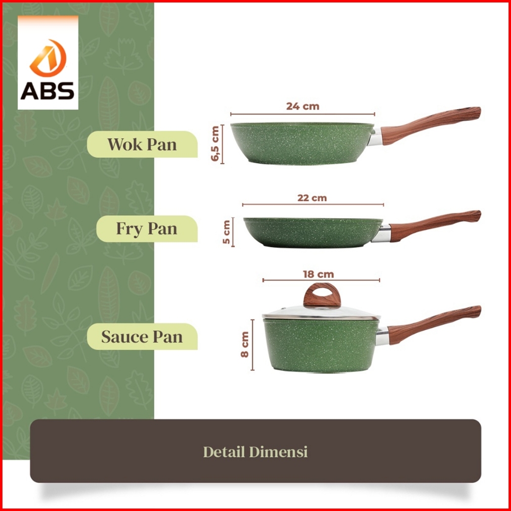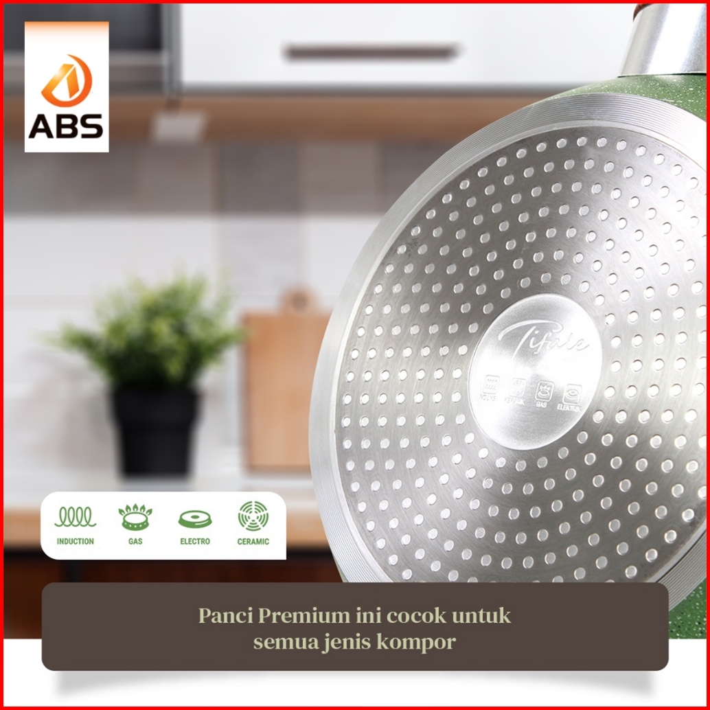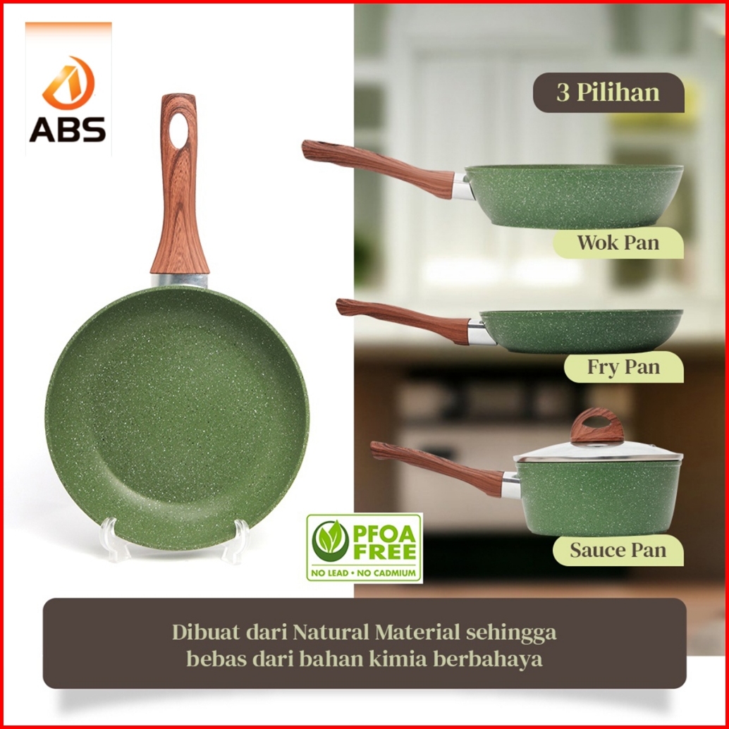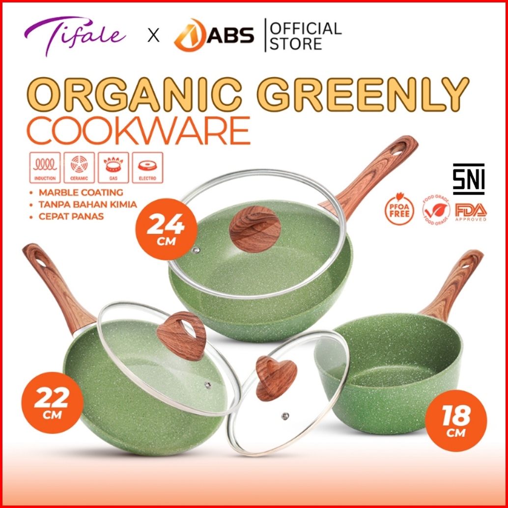 Tifale By Abs 3in1 Organic Greenly Cookware Marble Coated Anti Lengket Handle Bakelite Silicone Anti Leleh Avocado Pan