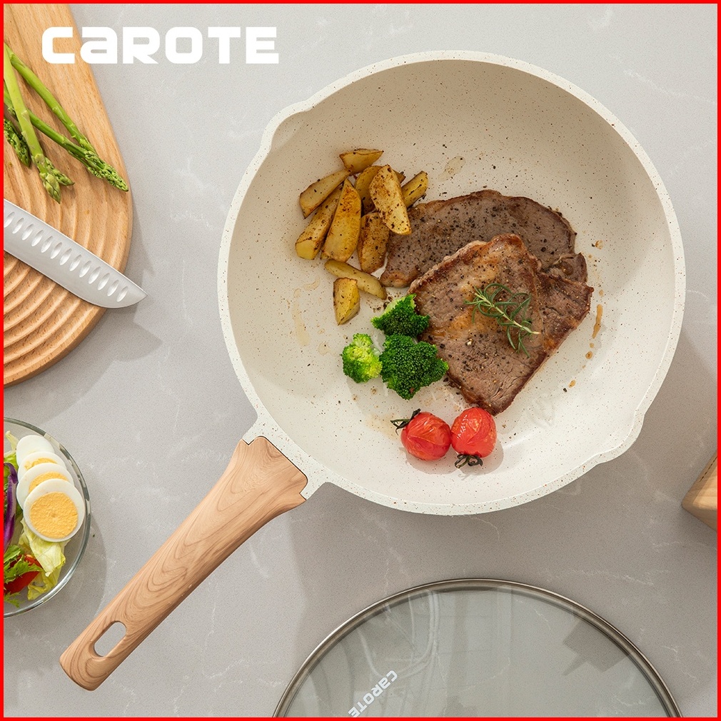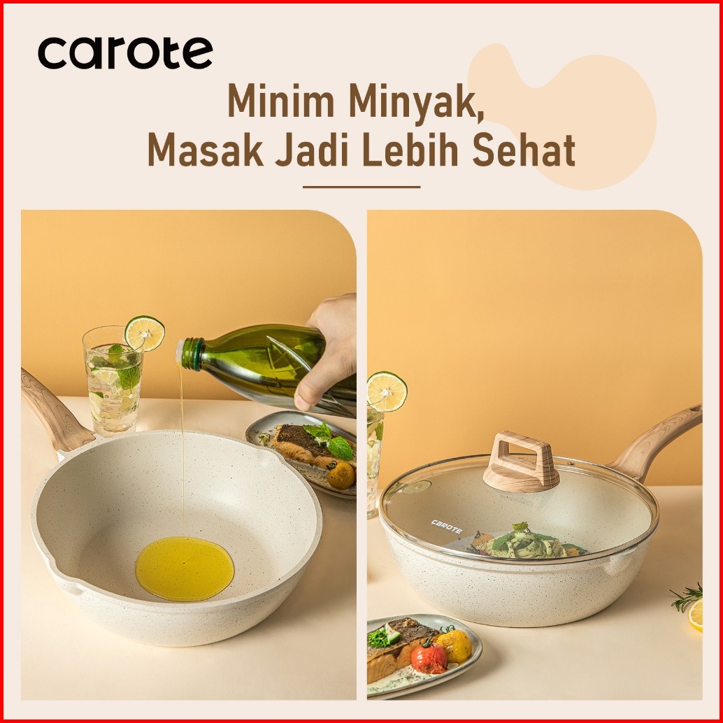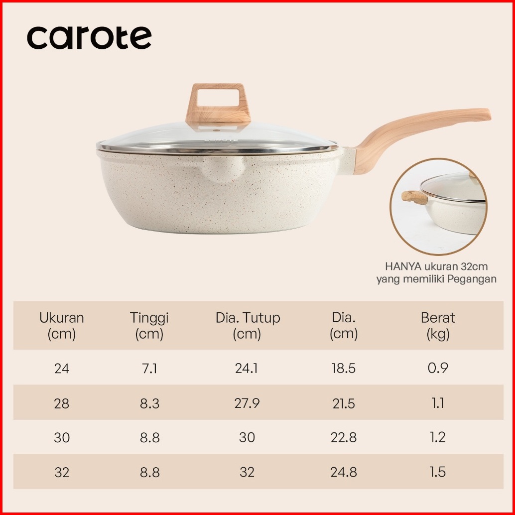 Carote Wajan Penggorengan Besar Lapisan Anti Lengket Dengan Tutup Kaca 24 28 30 32cm Cocok Untuk Semua Jenis Kompor Free