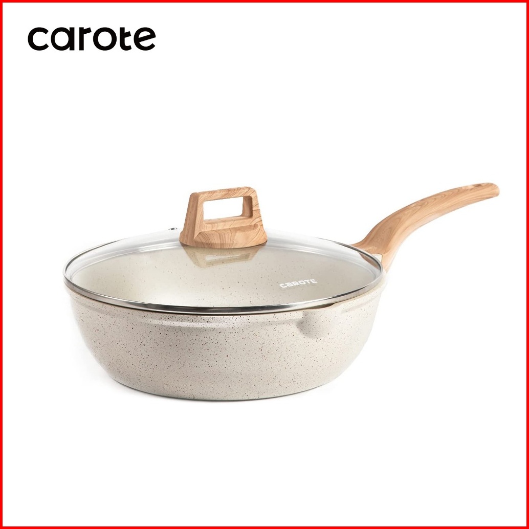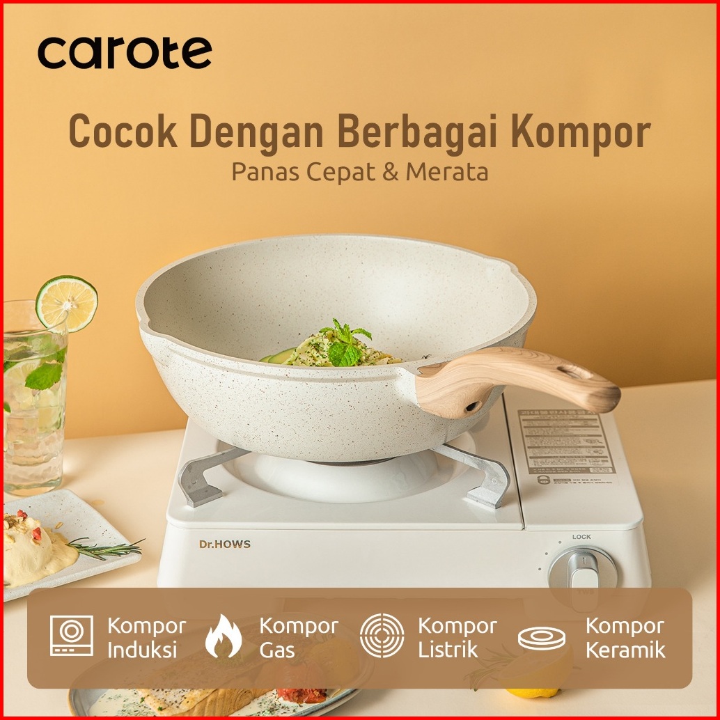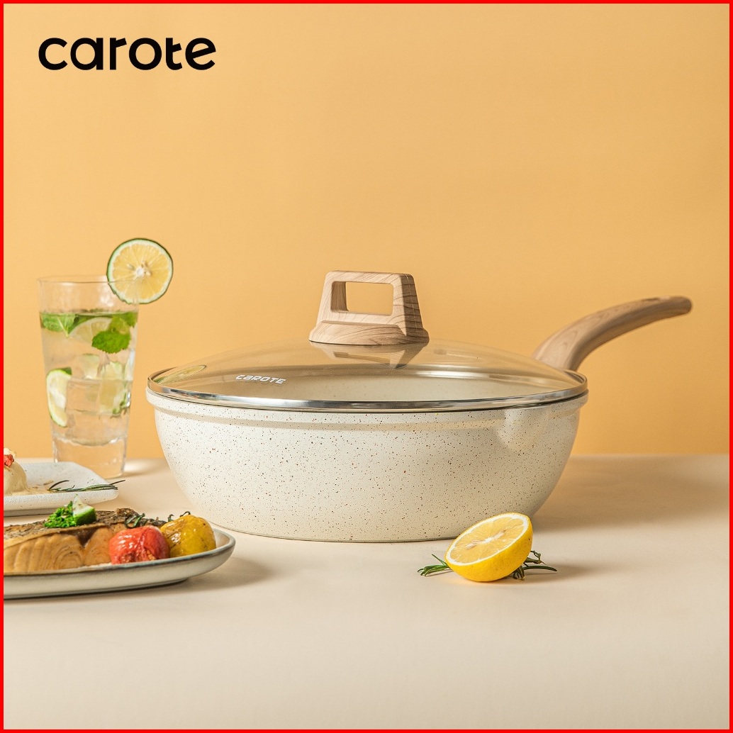 Carote Wajan Penggorengan Besar Lapisan Anti Lengket Dengan Tutup Kaca 24 28 30 32cm Cocok Untuk Semua Jenis Kompor Free
