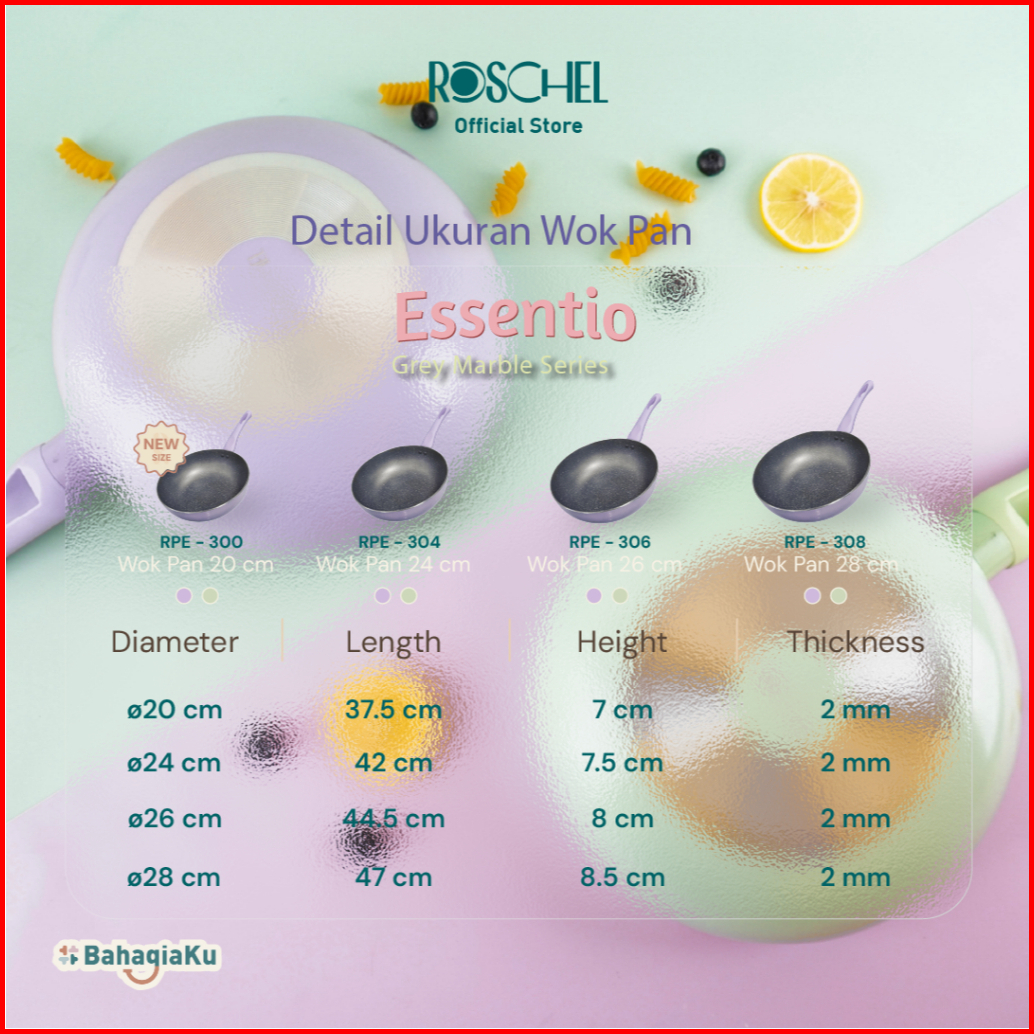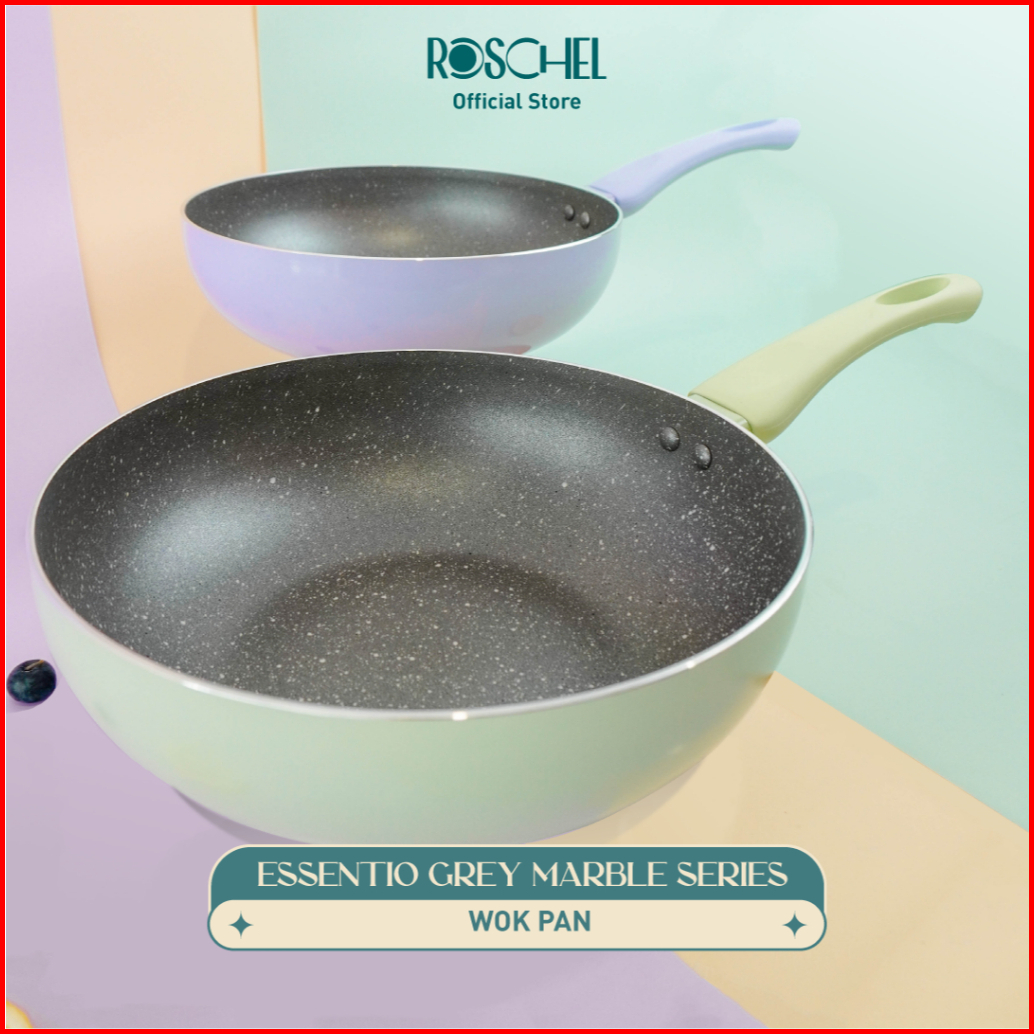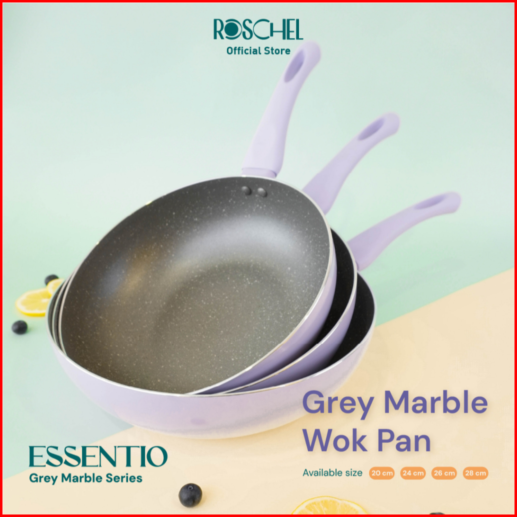 Roschel Essentio Marble Non-stick Wok Pan 20 24 26 28 Cm Panci Wajan Penggorengan Kuali Anti Lengket