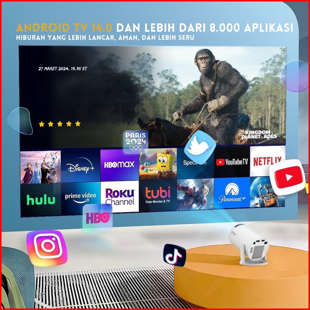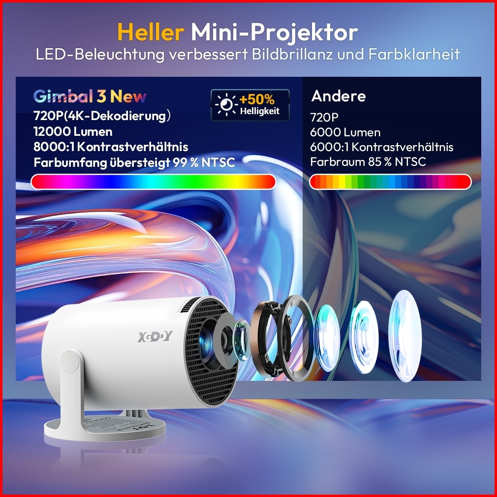 Xgody Gimbal 3 Smart Proyektor Lcd Android 14 - 720p - Auto Keystone - Netflix - Youtube - 220 Ansi