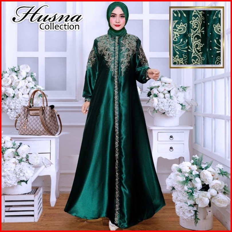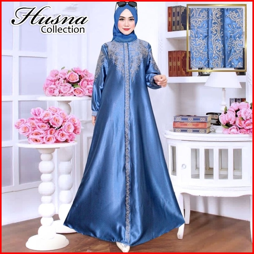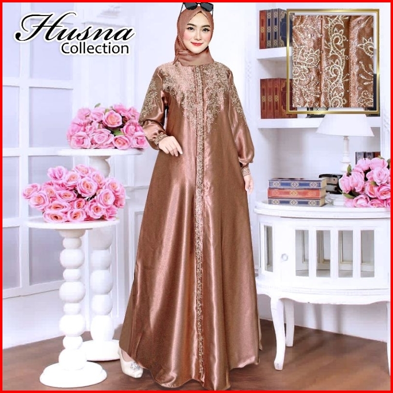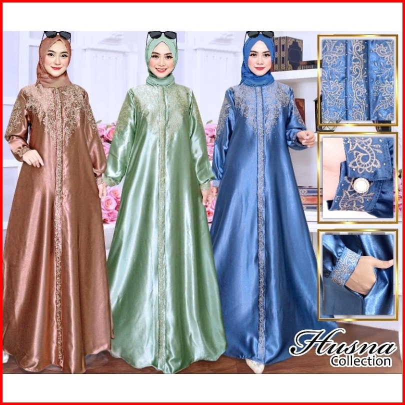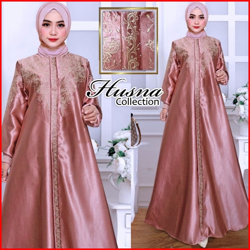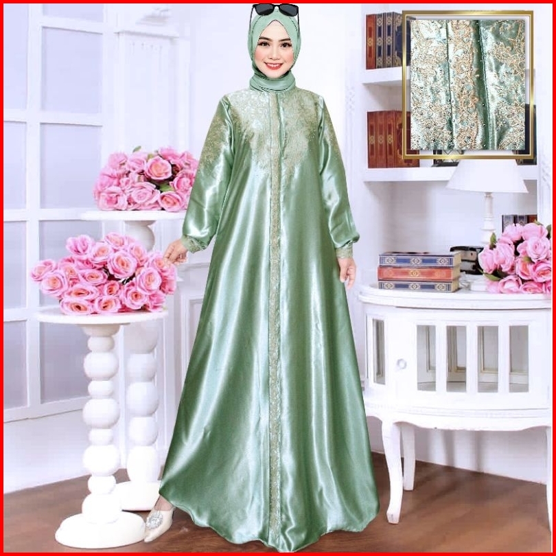 Gamis Kristal Bordir Ld 100 Sampai Ld 140 - Dress Wanita Muslimah - Baju Wanita Bordir - Semi Sutra - Bahan Satin Krista