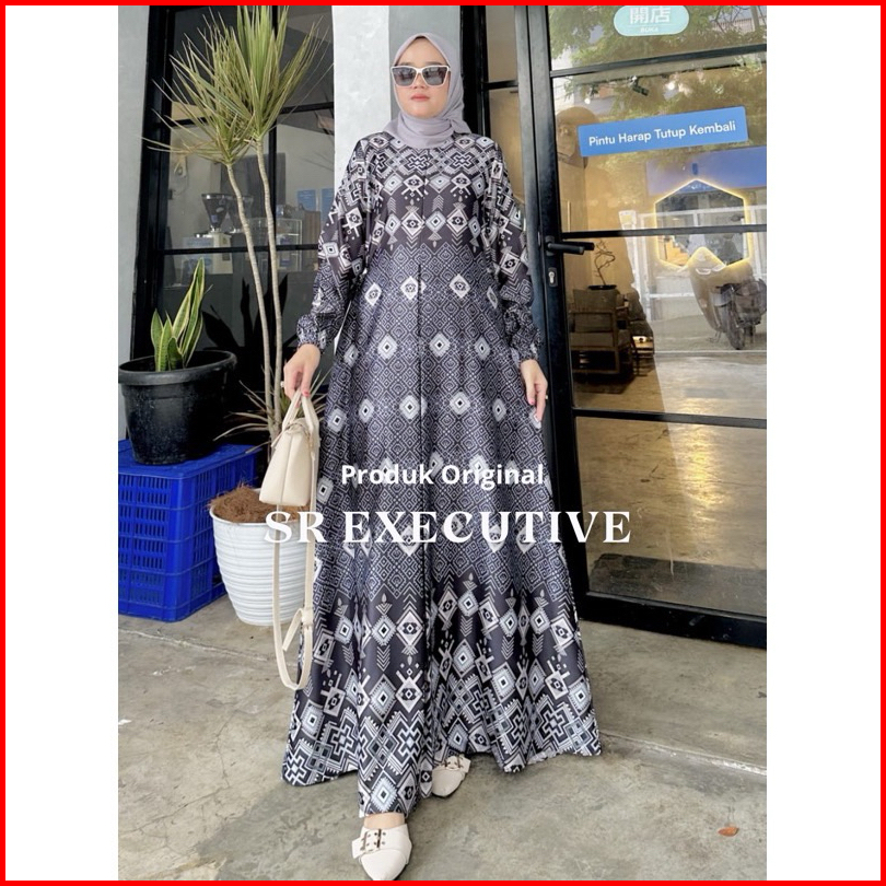 Gamis Kondangan Silk Premium Motif Wanita Muslim Terbaru Baju Pesta Elegan Mewah Lebaran Jumbo Ld 130cm
