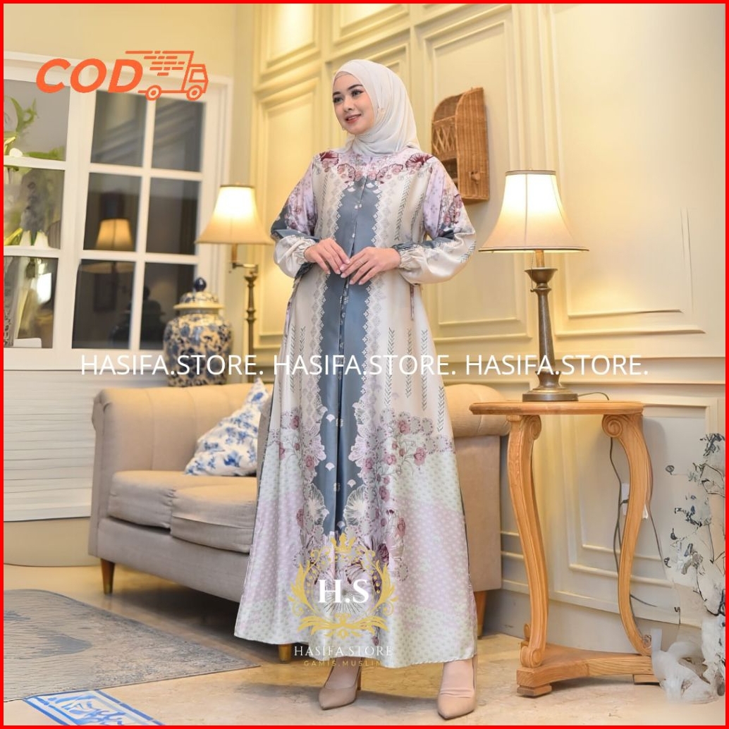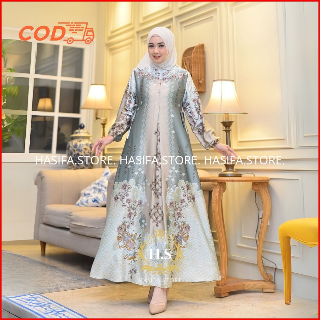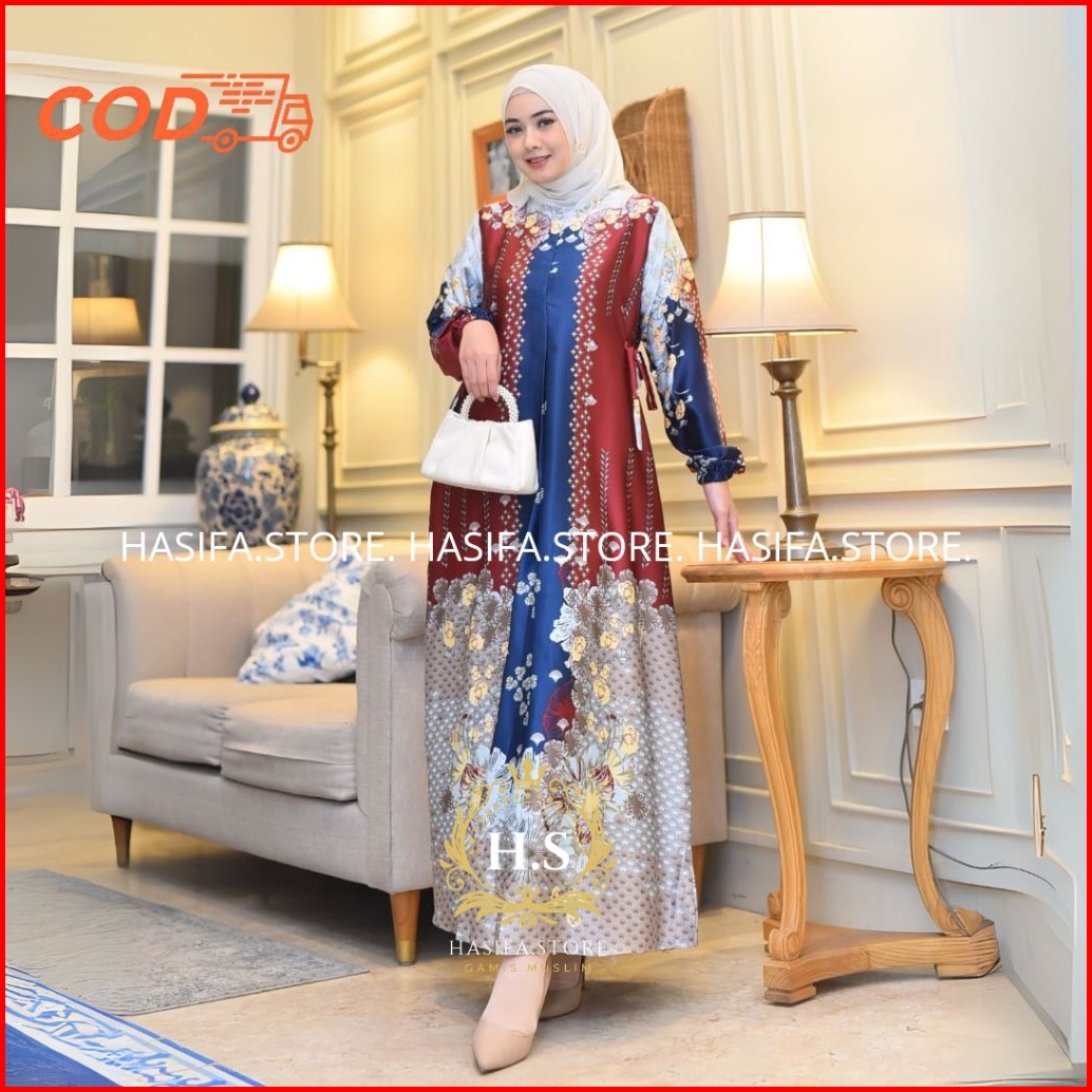 Hasifa Store - Gamis Medina Silk Premium Motif Kekinian Wanita Muslim Pesta Kondangan Seragaman Pengajian Terbaru Terlar