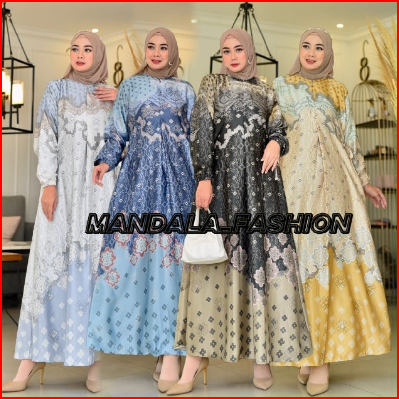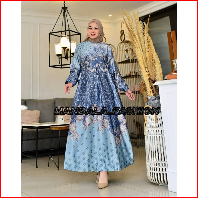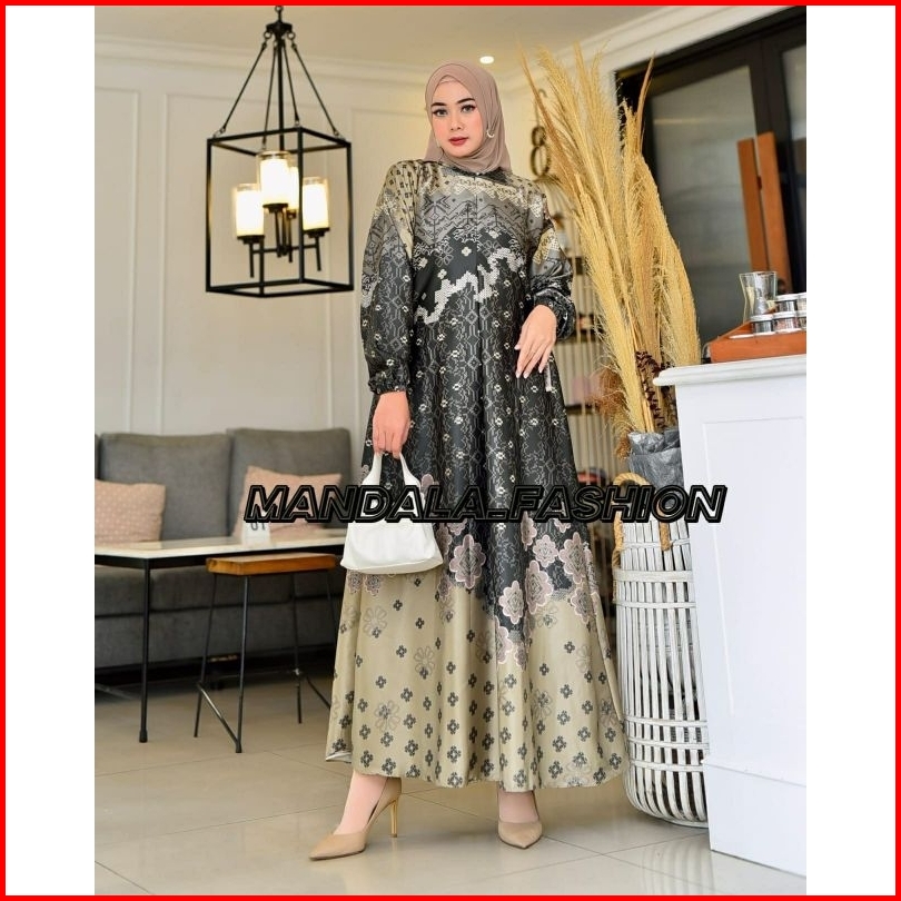 Dress Haira Gamis Silk Premium Motif Mewah Printing Kekinian Jumbo Terbaru Dress Wudhu Freandly