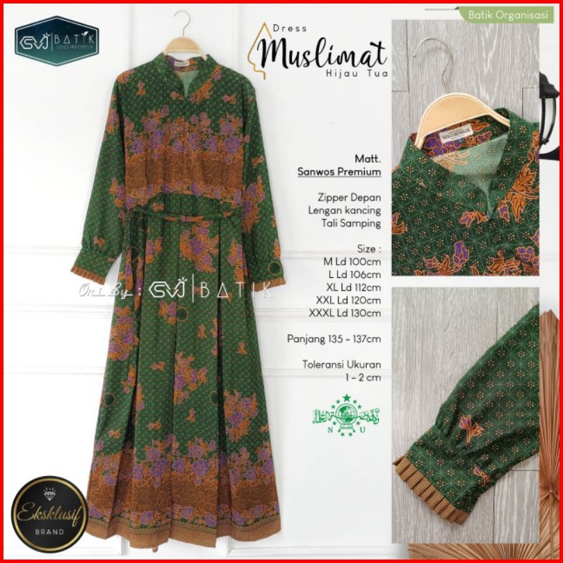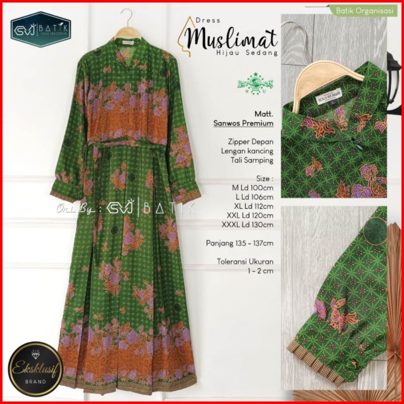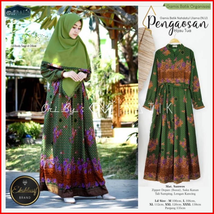 Gamis Batik Muslimat Nu Terbaru 2023 Seragam Hijau Wanita Payung Pengajian Fatayat Nu Dewasa Jumbo Set Jilbab Sedang Tua