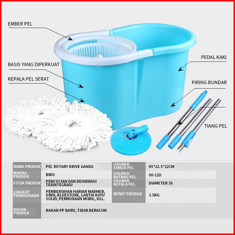Jorens620 Set Pel Putar Dua Penggerak Ember Pel Rumah Tangga Malas Tanpa Tangan Spin Mop