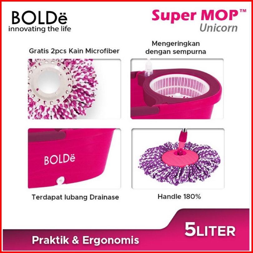 Alat Pel Super Mop Bolde Unicorn Spin Mop Kain Pel Lantai