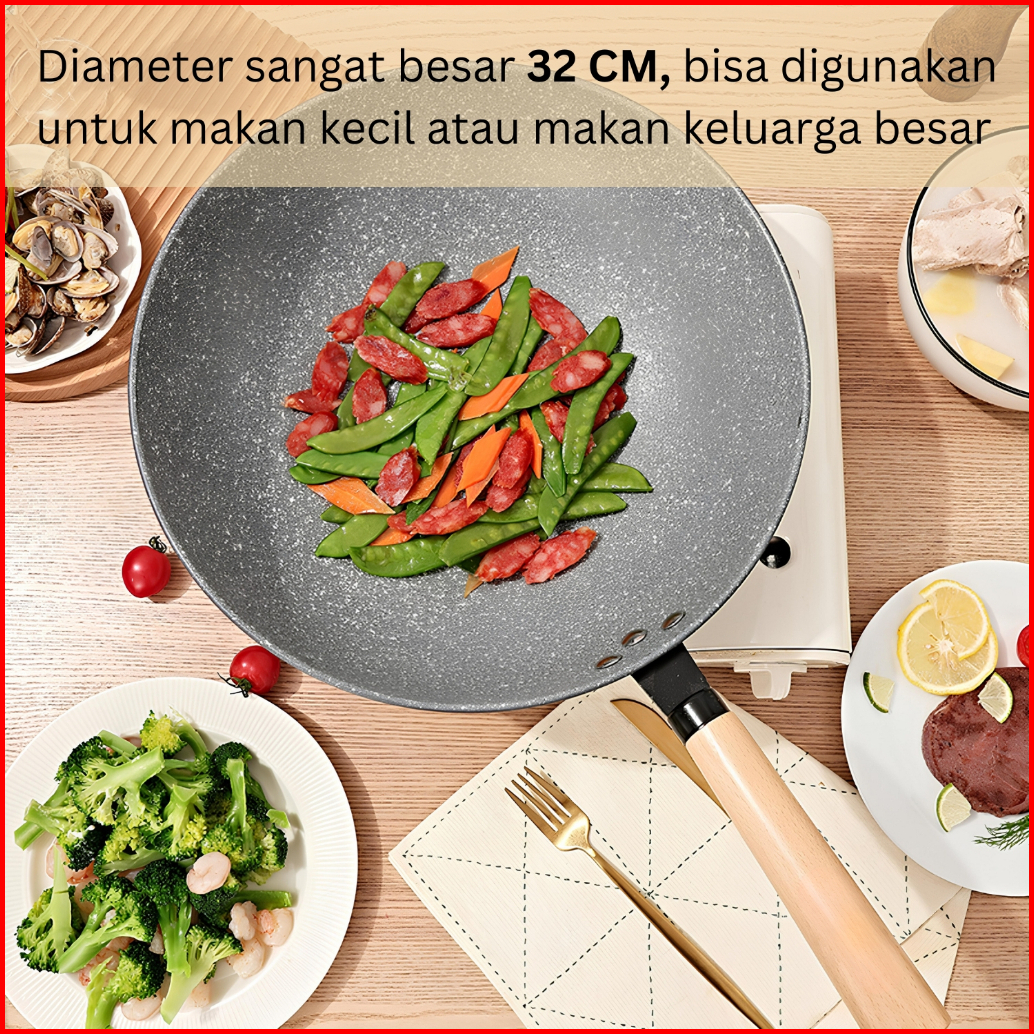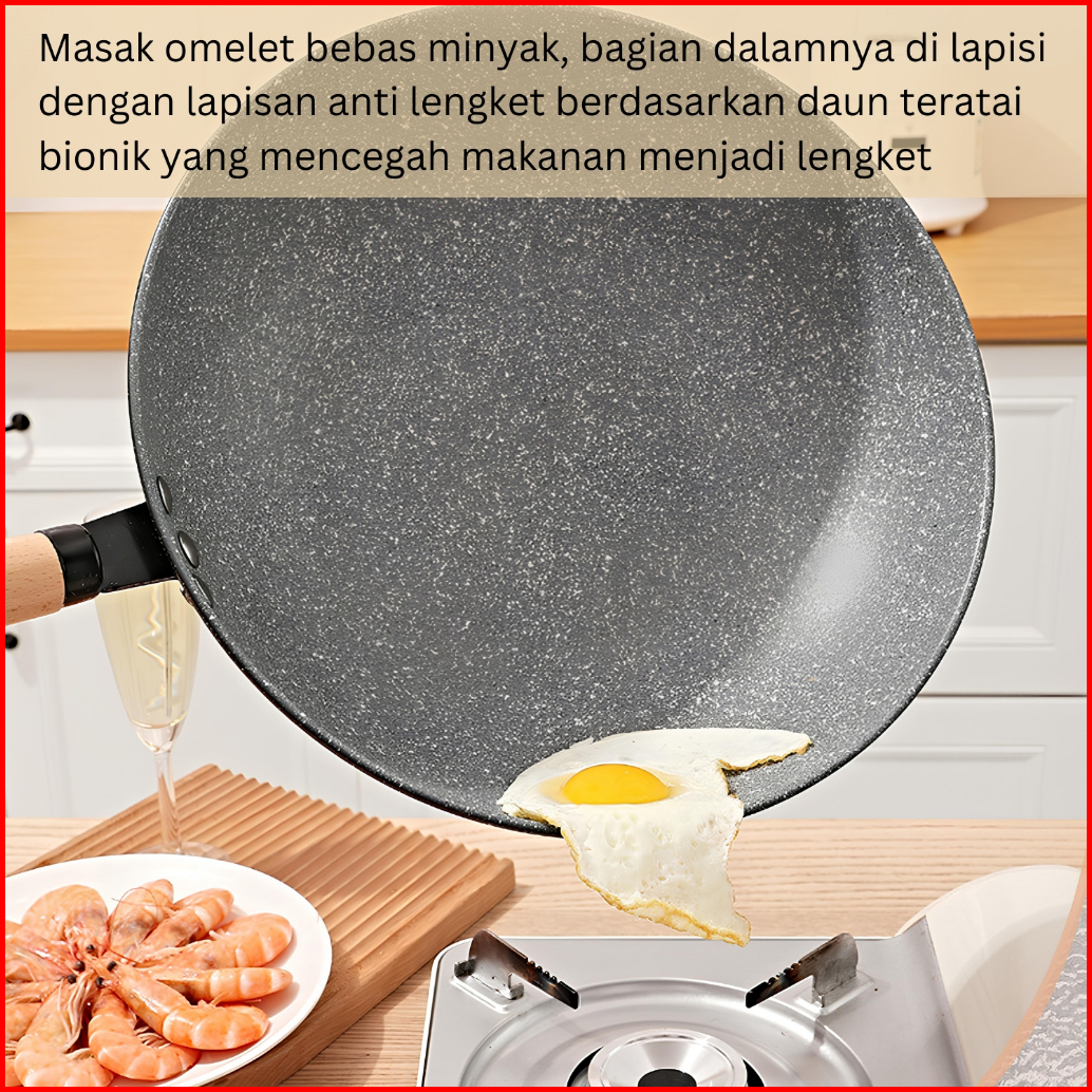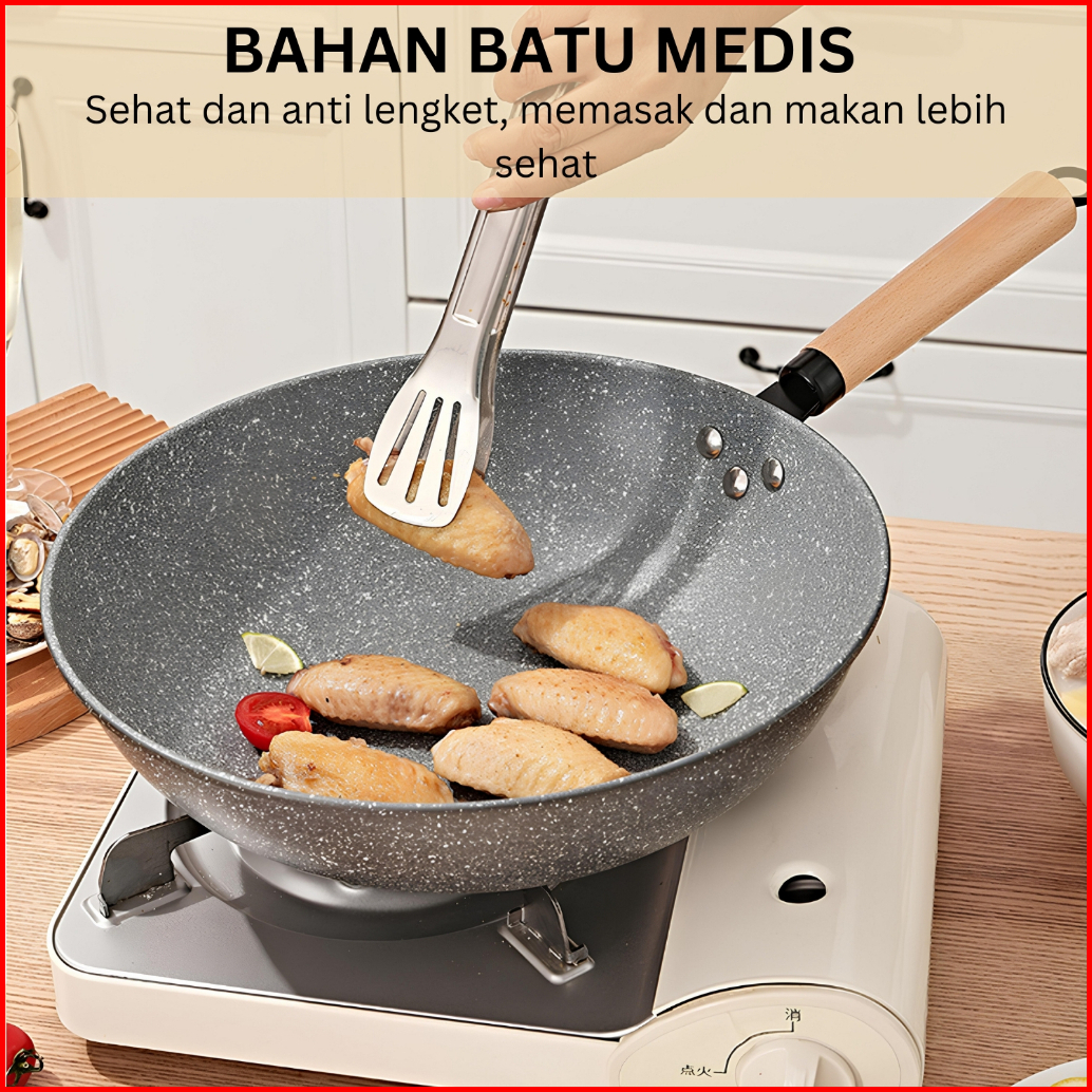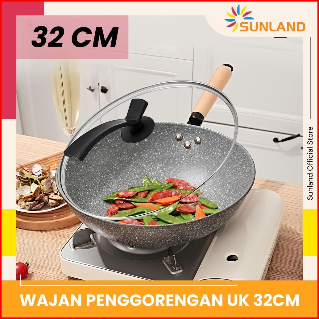 Sunland Wajan Maifan Fry Pan Batu Medis Ukuran 32 Cm Penggorengan Anti Lengket Dengan Tutup Kaca