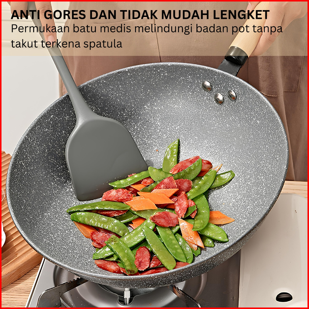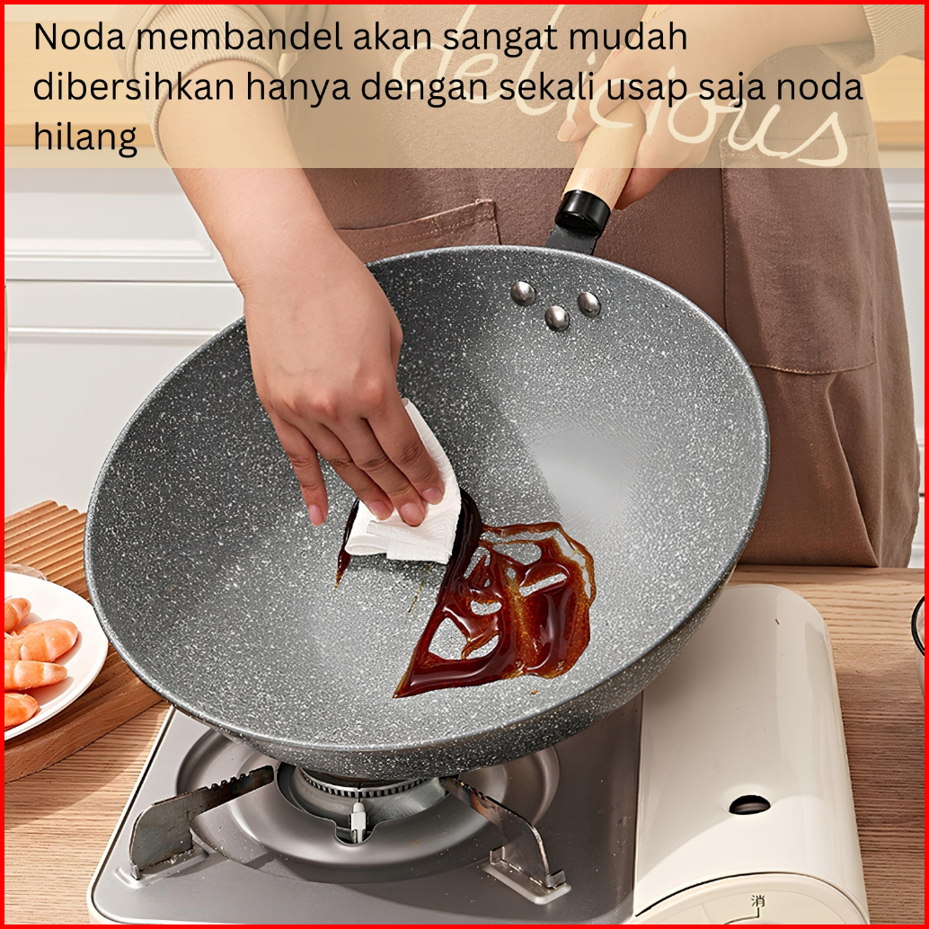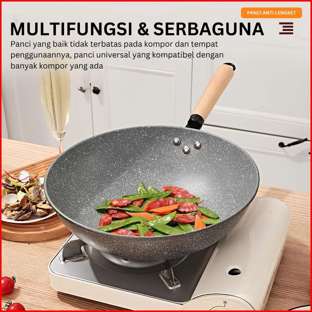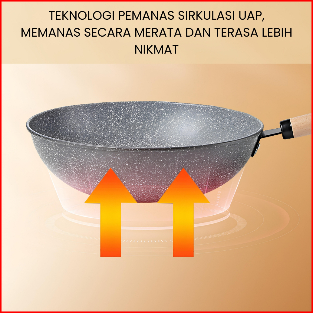 Sunland Wajan Maifan Fry Pan Batu Medis Ukuran 32 Cm Penggorengan Anti Lengket Dengan Tutup Kaca