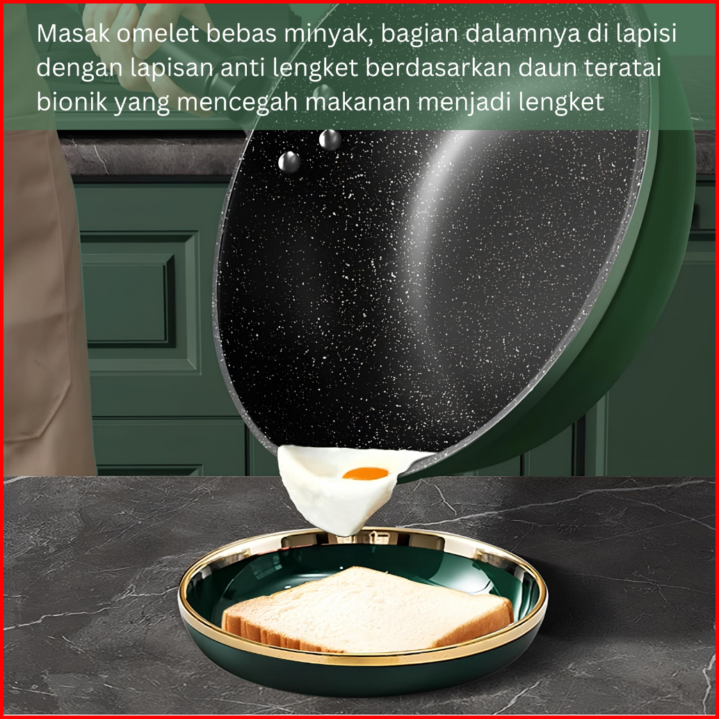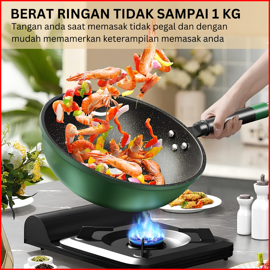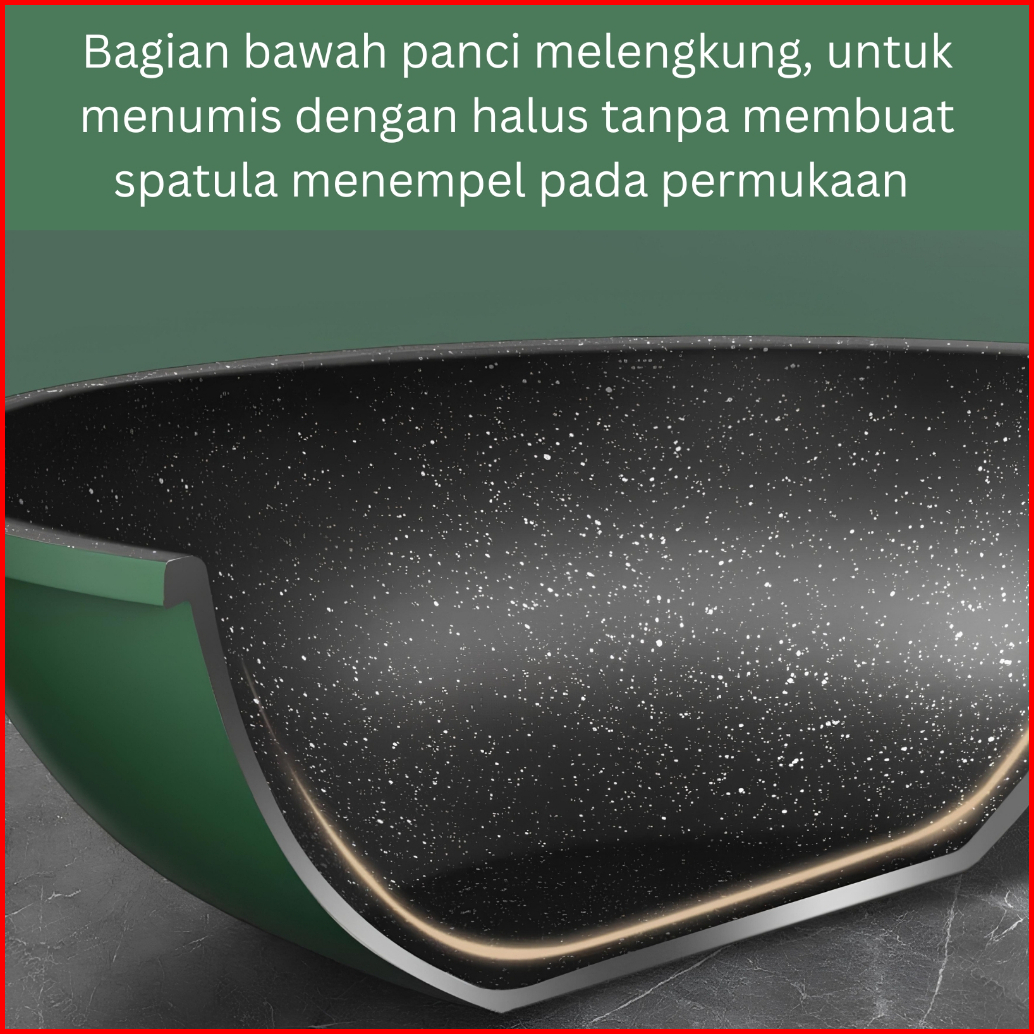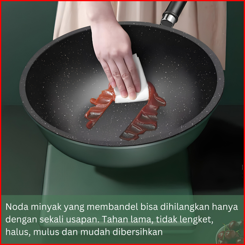 Sunland Panci Wajan Penggorengan Batu Medis Wok Pan Anti Lengket Dengan Tutup Kaca Ukuran 32cm
