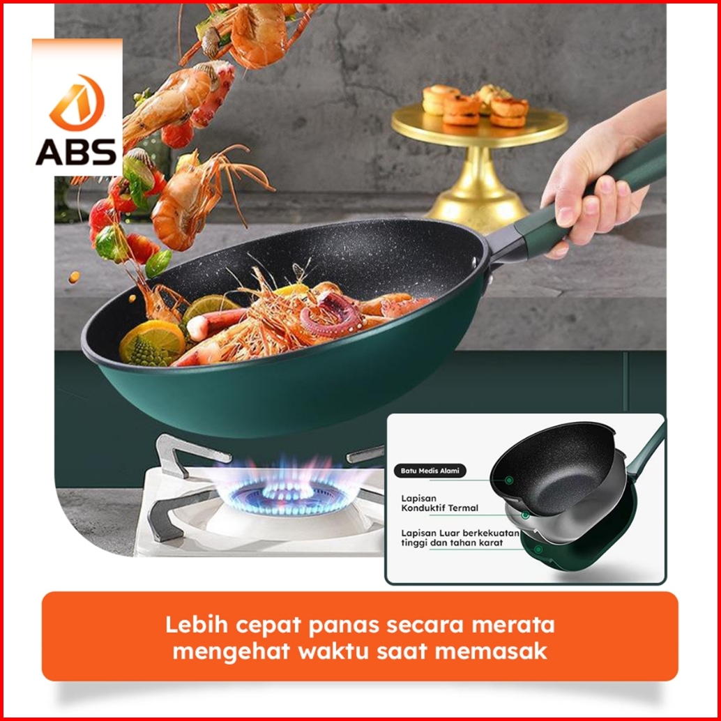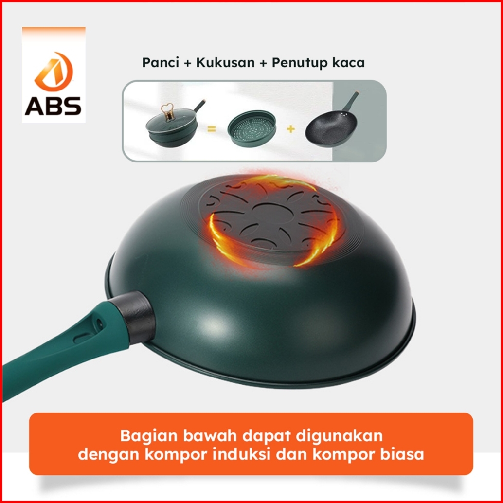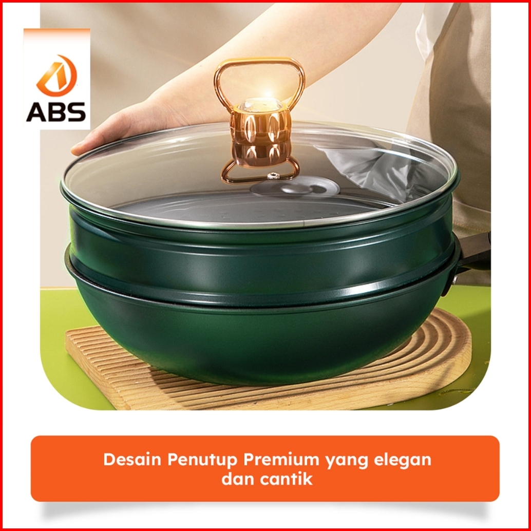 Abs X Tifale 3in1 Wajan Wokpan Steamer 32 Cm Bahan Batu Medis Anti Lengket Hijau Premium Panci Penggorengan Kukus Serba