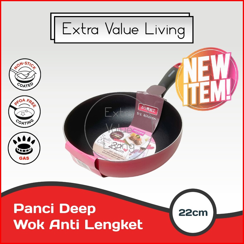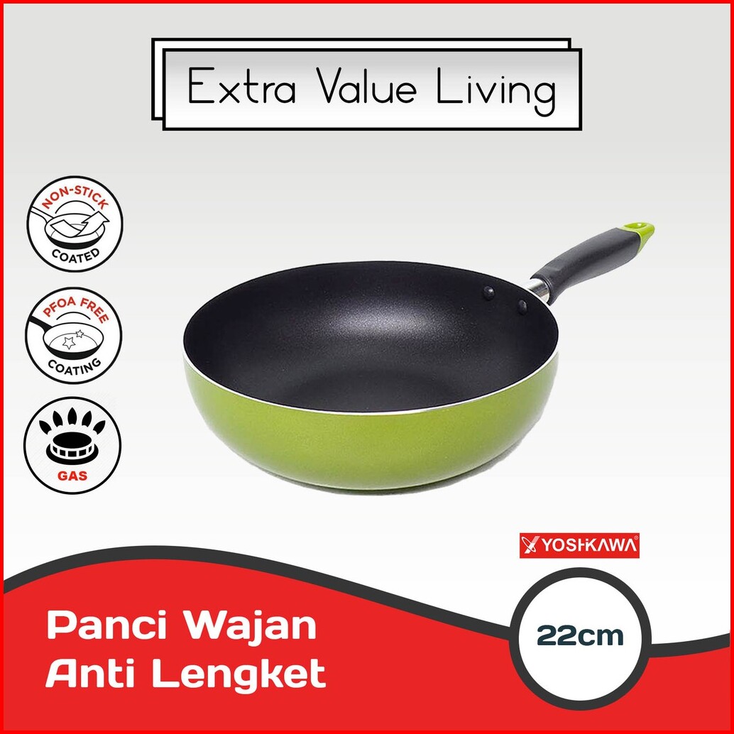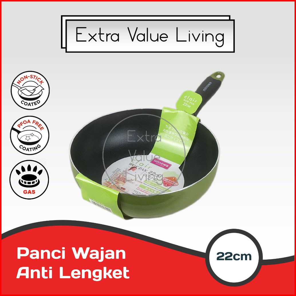 Minowa Panci Anti Lengket Wajan Tumis 22 Cm Wok Pan Evl-cl-12-02 Hijau