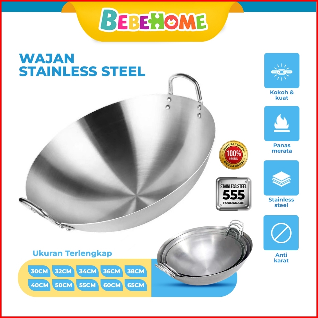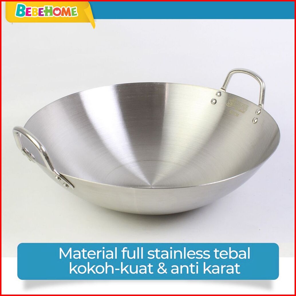 Bebehome Wajan Stainless Steel 555 Tebal Kuali Premium Dengan Pegangan Stainless