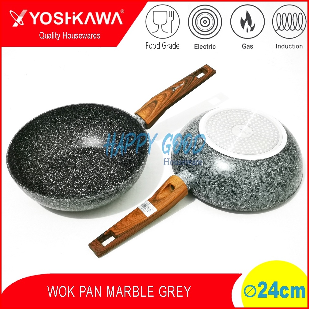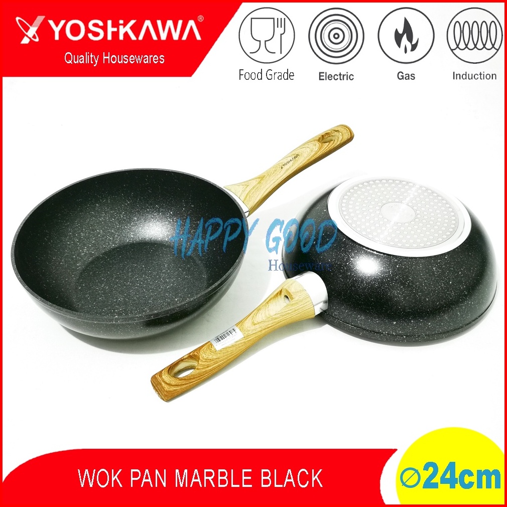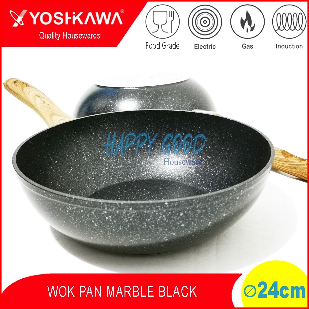 Yoshikawa 24cm Wok Panci Penggorengan Wajan Teflon Marble 4 Varian