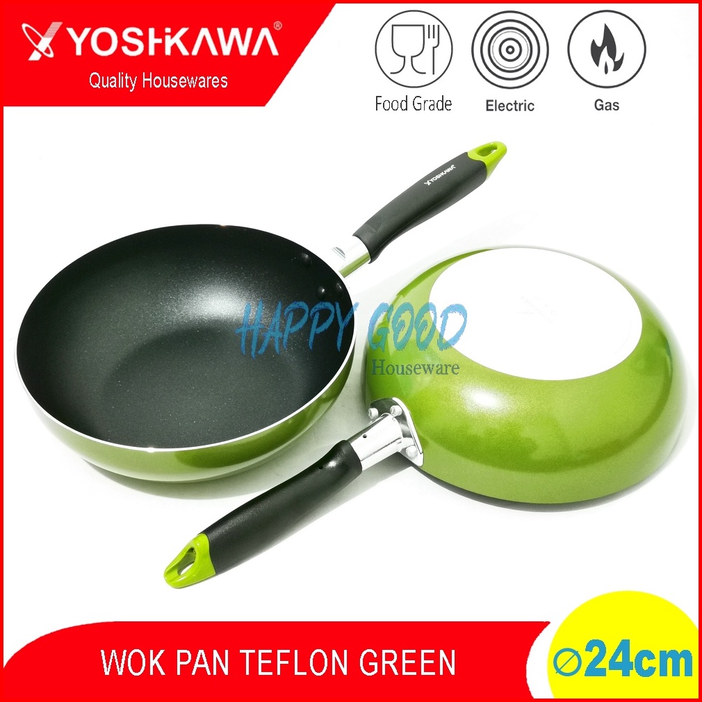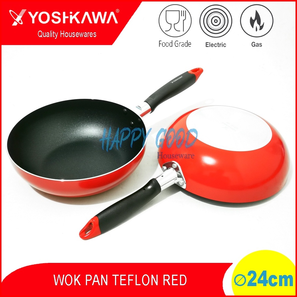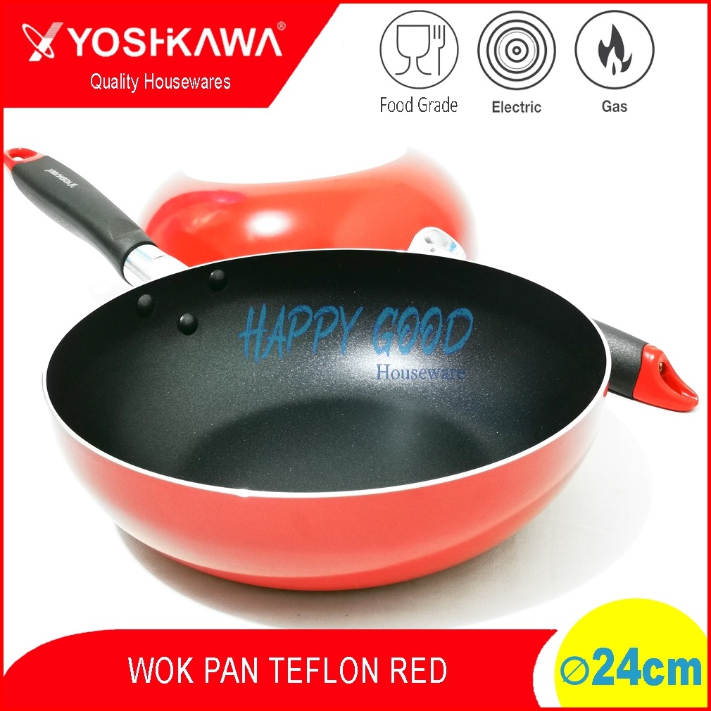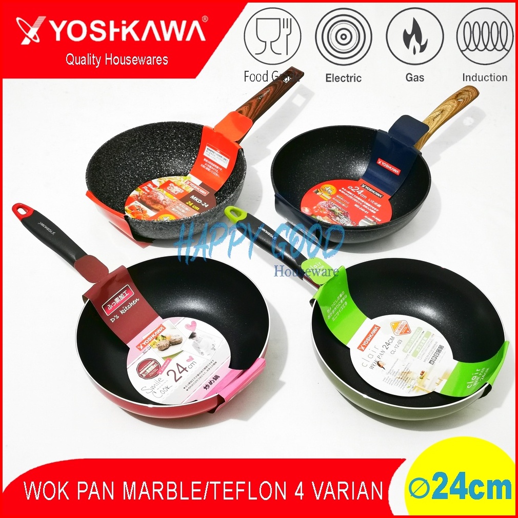 Yoshikawa 24cm Wok Panci Penggorengan Wajan Teflon Marble 4 Varian