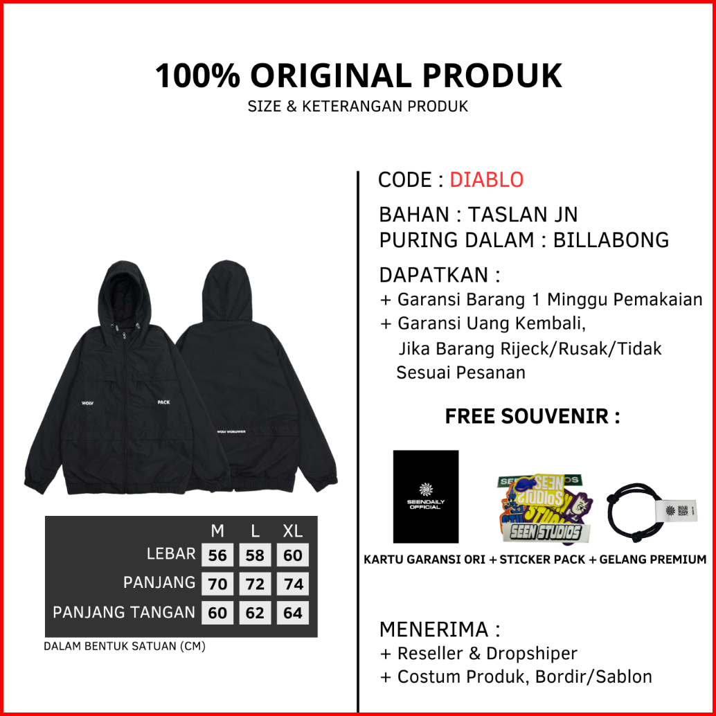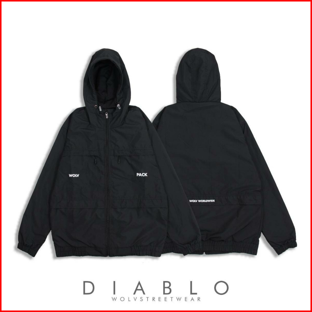 Wolv - Jaket Parasut Windbreaker Outdoor Waterproof Anti Air Pria Wanita Diablo Hitam Wolv Original - Jaket Parasut - Ja