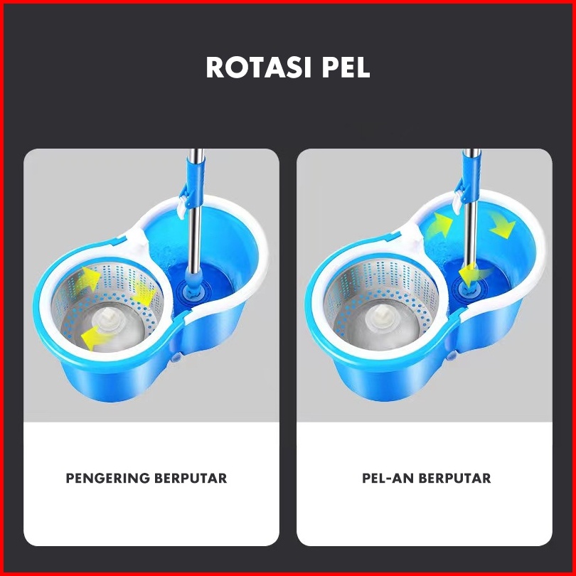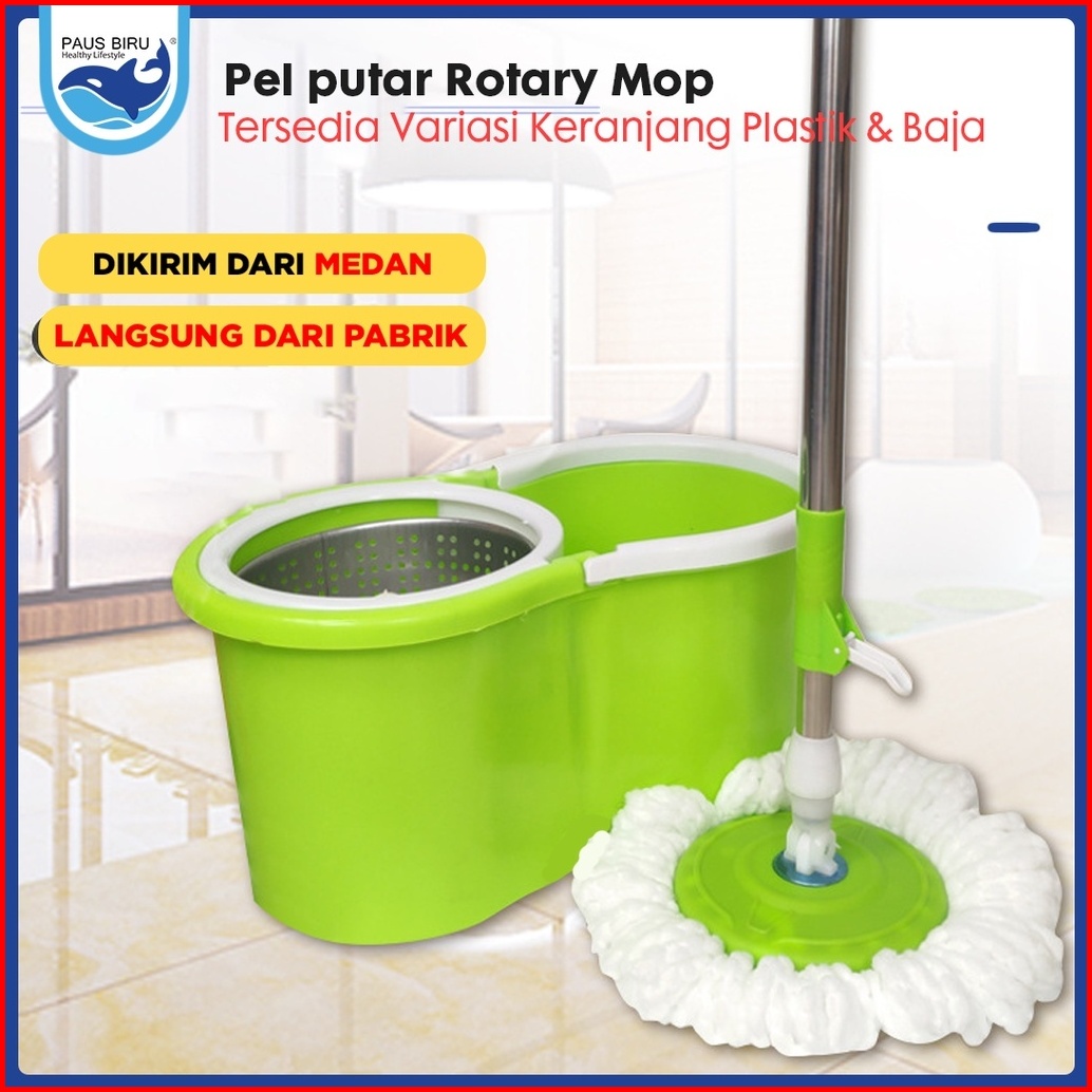 Paus Biru Medan - Set Alat Pel Lantai Stainless Super Mop Dengan Ember Pencuci Putar Rotary Mop 360