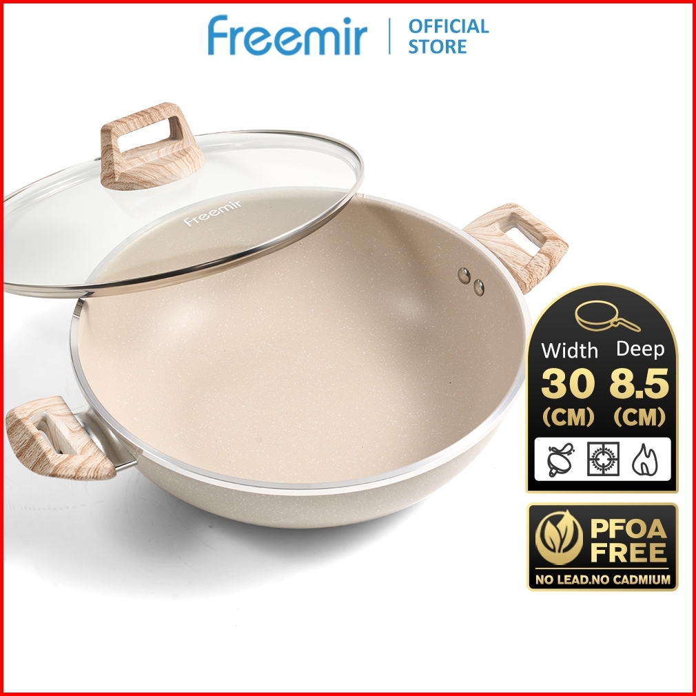 Freemir Wajan Panci Jumbo 30 Cm Double Bottom Dan Tutup Kaca Anti Lengket Granit