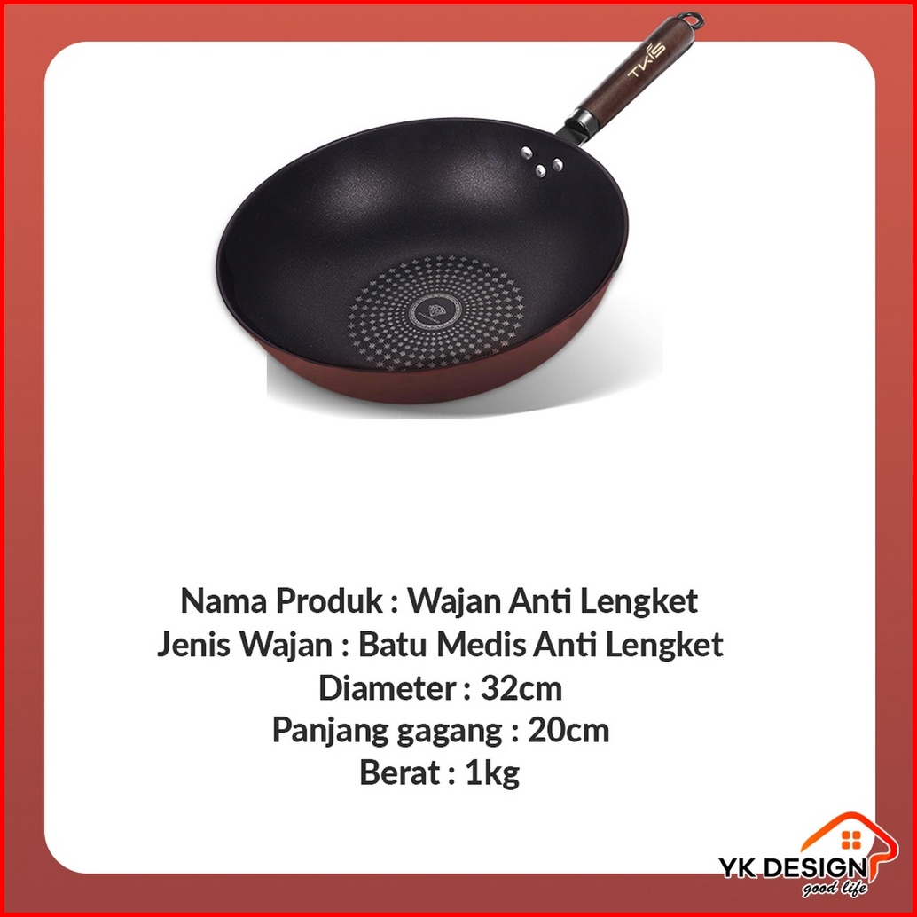 Tkis By Yk Design Tk-826 Wajan Penggorengan Antilengket Bahan Batu Medis 32 Cm