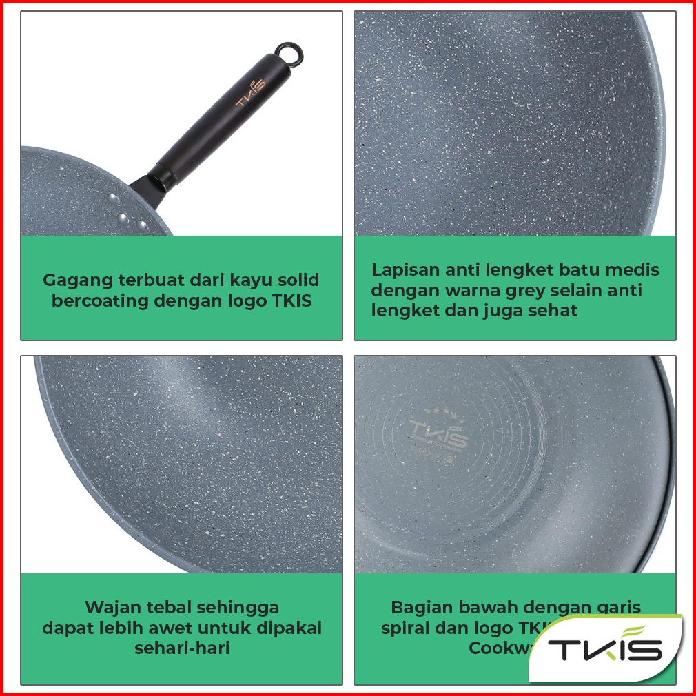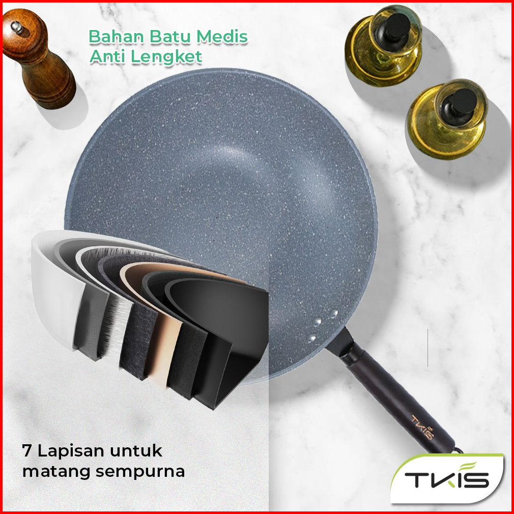 Tkis Wajan Anti Lengket 32cm Vulcan Grey Panci Wok Pan Penggorengan Anti Lengket Tk-856