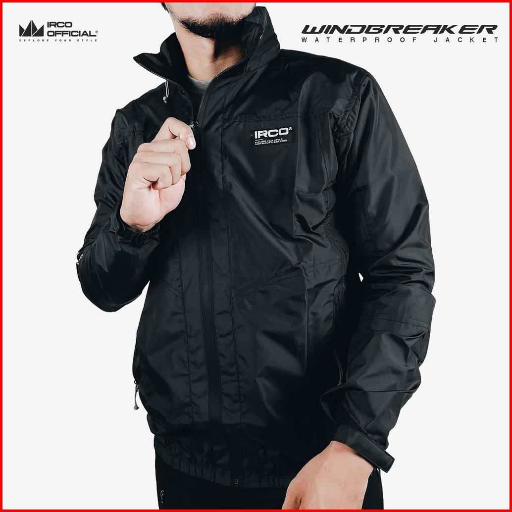 Irco Windbreaker Jaket Gunung Lipat Pria Hitam Waterproof - Foldable Jacket Parasut Anti Air Angin