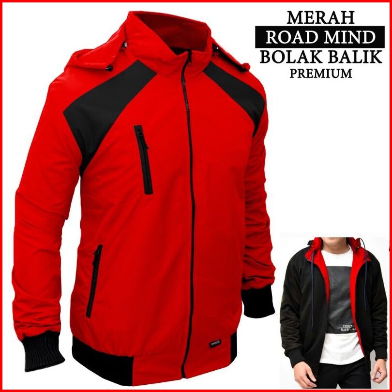 Jaket Parasut Bolak Balik 2in1 Road Mind Premium Merah Parasit Jaket Motor Pria Wanita M L Xl Xxl
