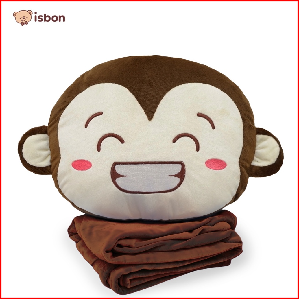 Balmut Bantal Selimut Karakter Kepala Monyet Monkey Warna Brown Cocok Untuk Traveling Bahan Hangat Dan Lembut By Istana