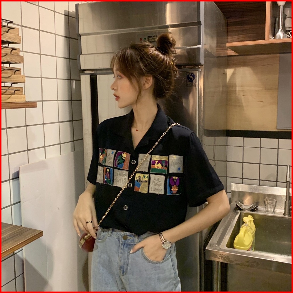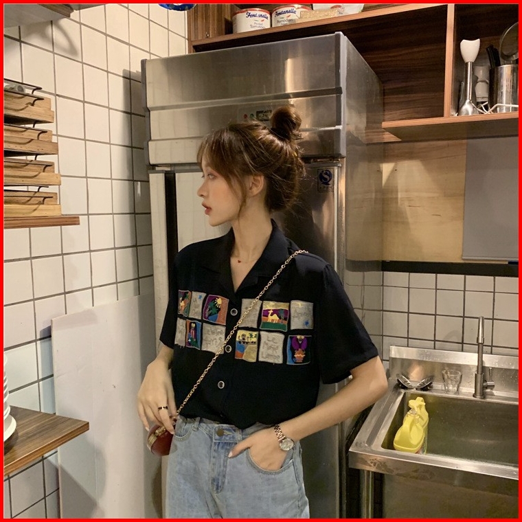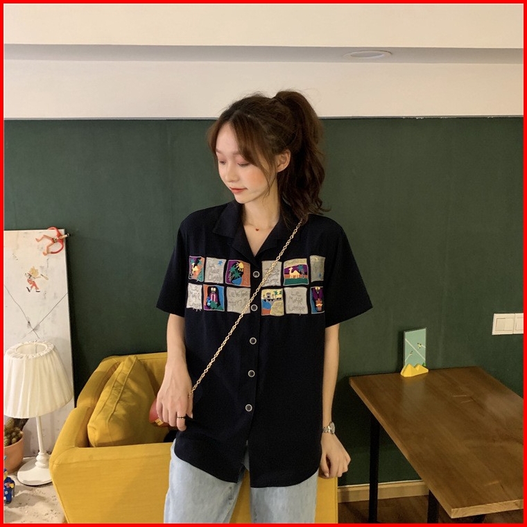 Kemeja Lengan Pendek Tipis Longgar Wanita Baru Musim Panas