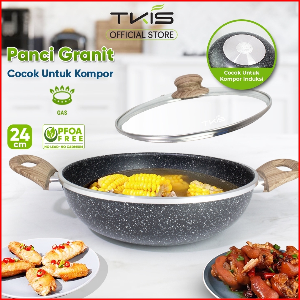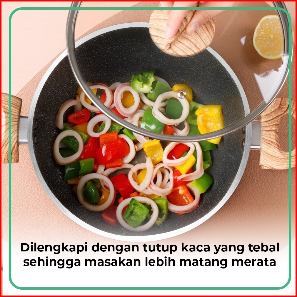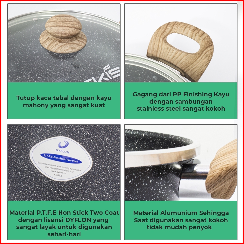 Sale Tkis Wajan Anti Lengket Dyflon Wood Series Diameter 24cm Wajan Penggorengan Dengan Tutup Kaca Premium Tk-aa901