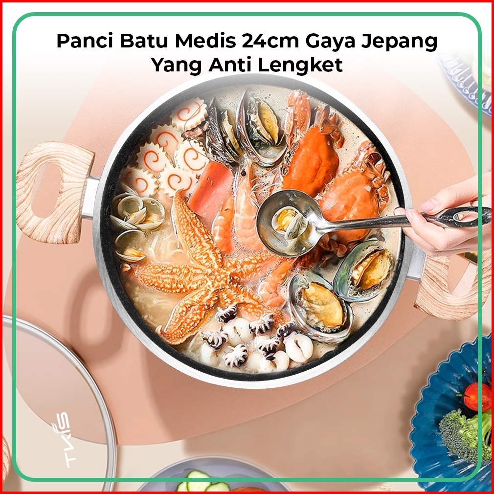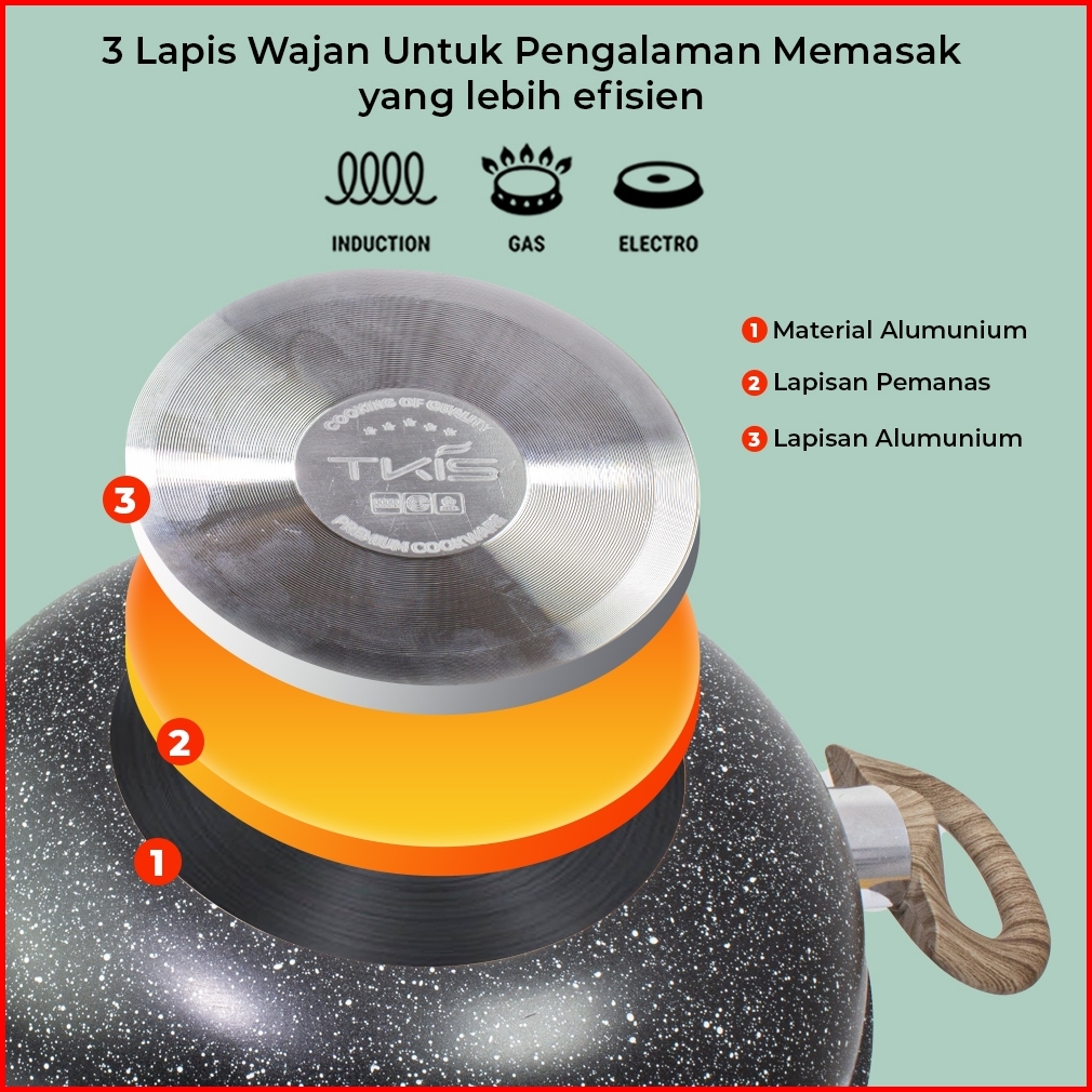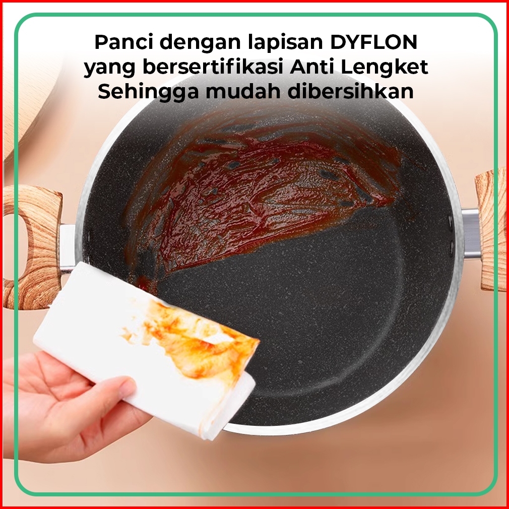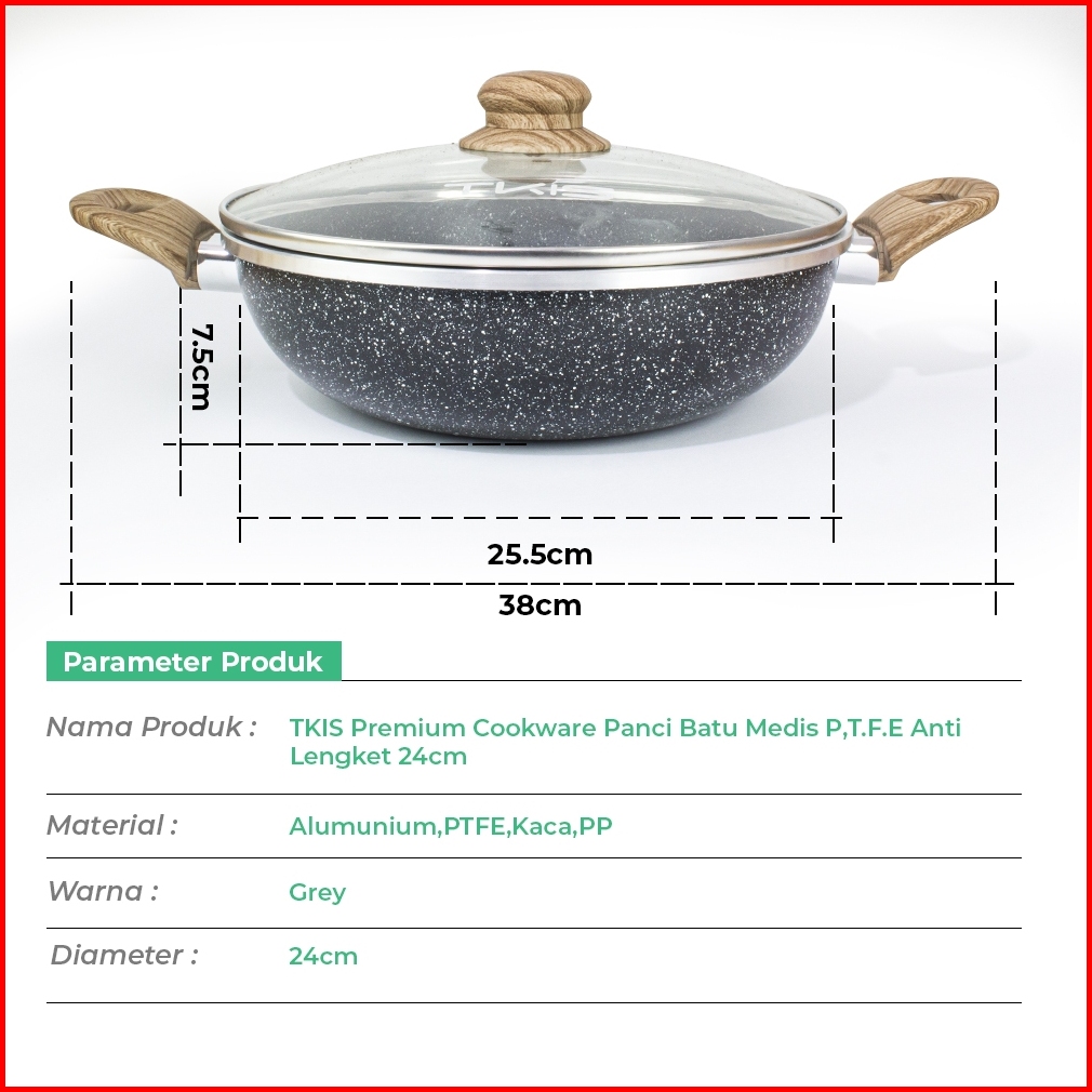 Sale Tkis Wajan Anti Lengket Dyflon Wood Series Diameter 24cm Wajan Penggorengan Dengan Tutup Kaca Premium Tk-aa901