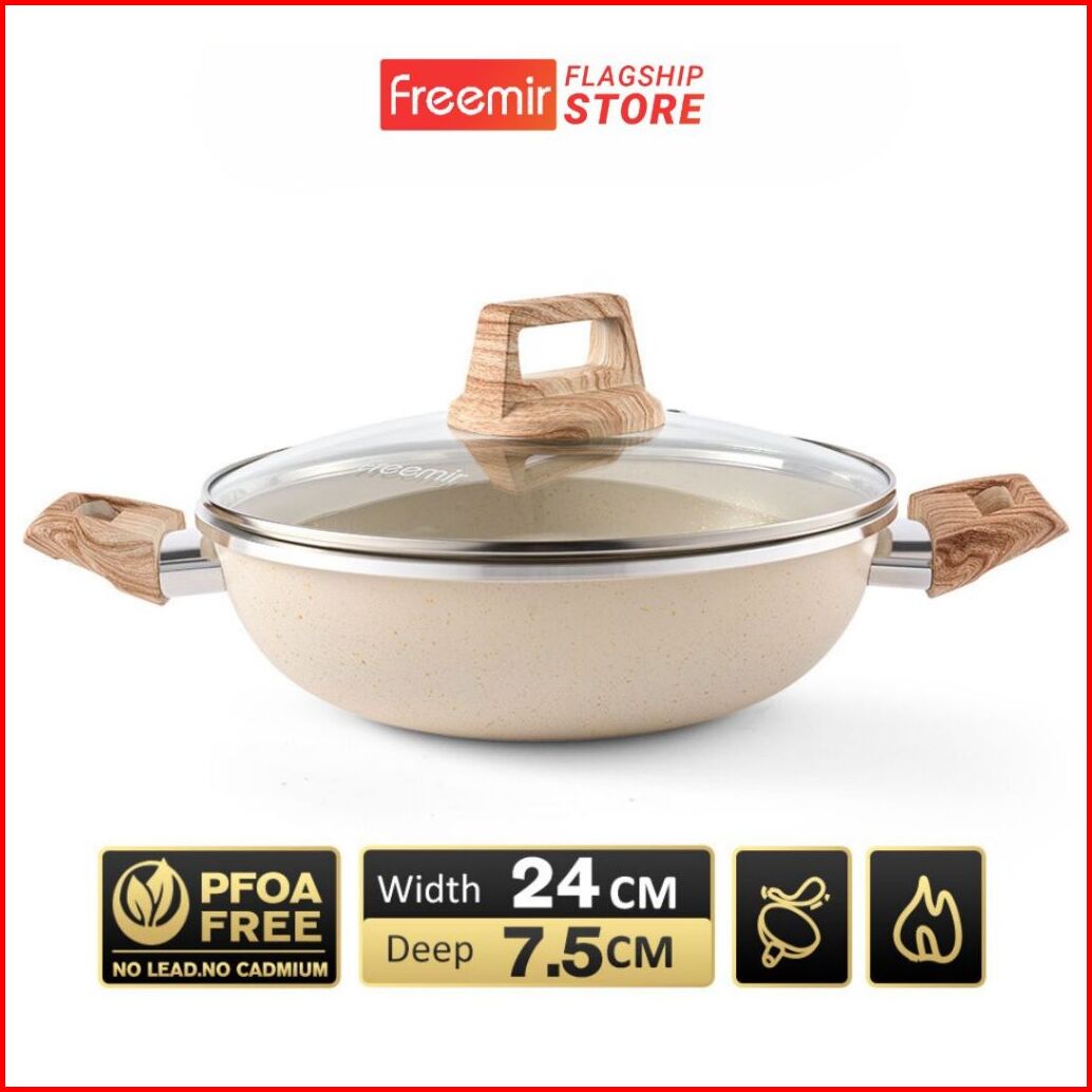 Diskon Gajian Freemir Wajan 24cm Tinggi 7 5cm Granit Warna Beige Penggorengan Jumbo Serbaguna Anti Lengket