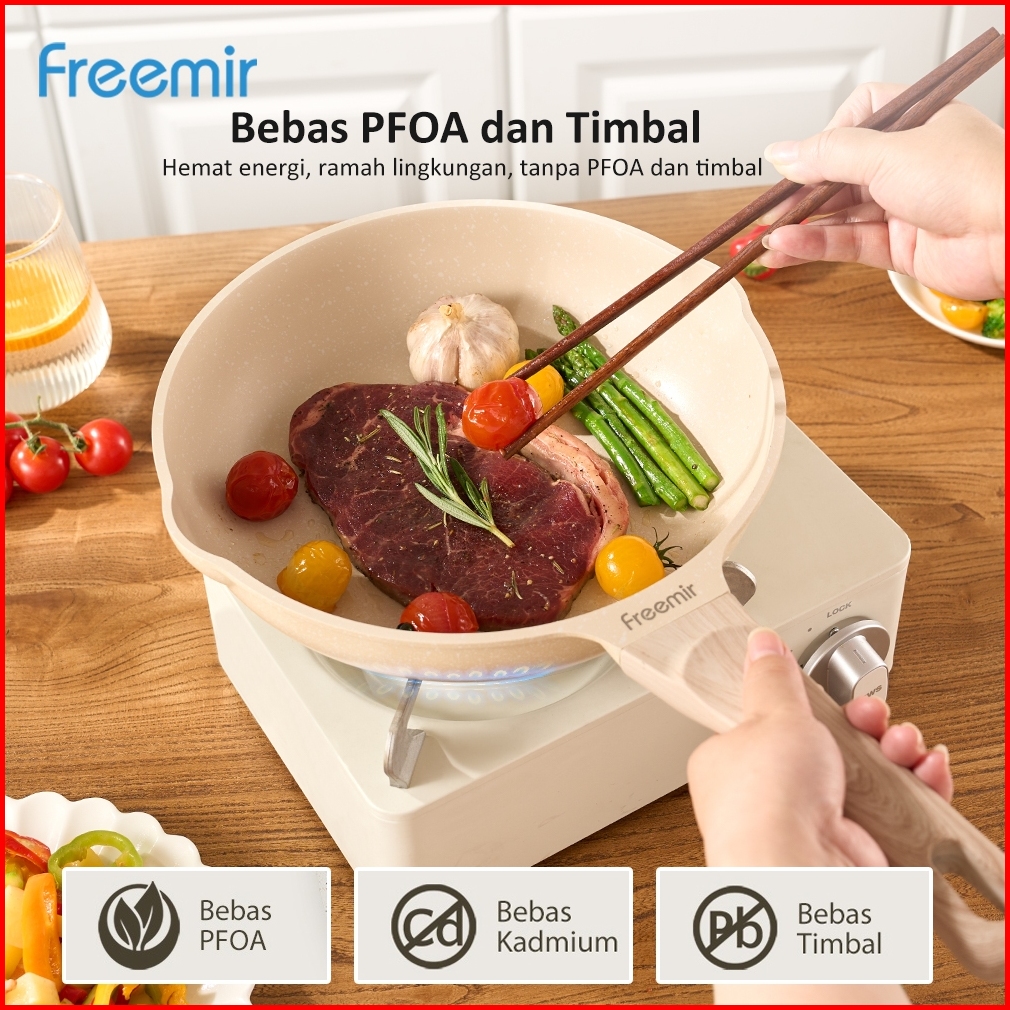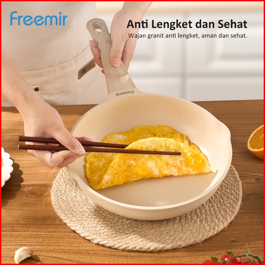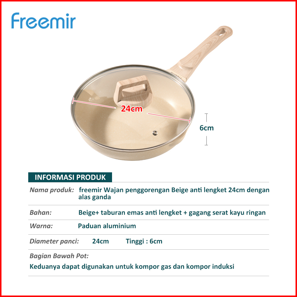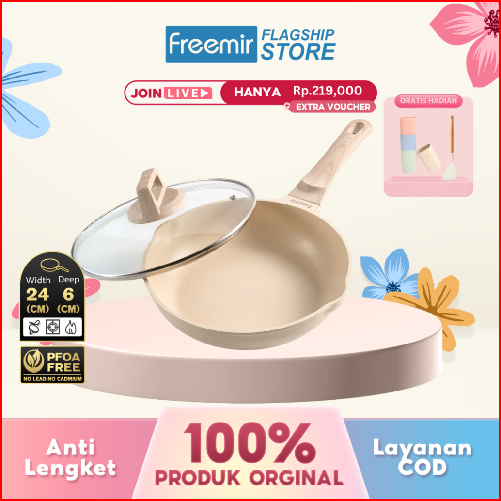 Deals Free Gelas Sutil Freemir Wajan 24 Cm Anti Lengket Lapisan Granit Dengan Tutup Kaca