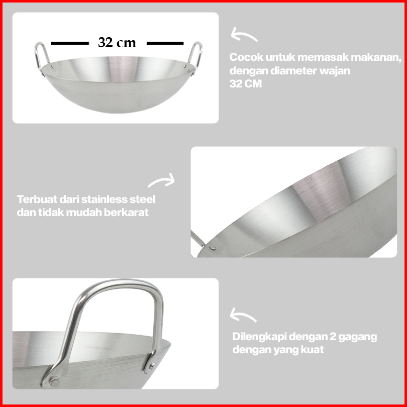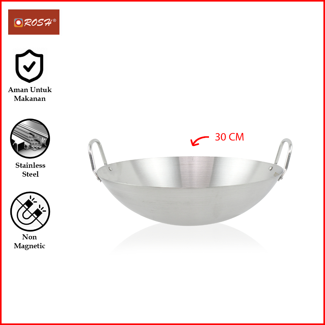 Rosh Wajan Anti Karat 30 - 75 Cm Stainless Steel Super Wok Twin Handle Ros-sw32 Chrome