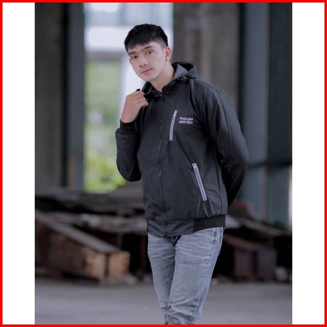Jaket Bomber Hoodie 2 In 1 Jaket Pria Bolak Balik