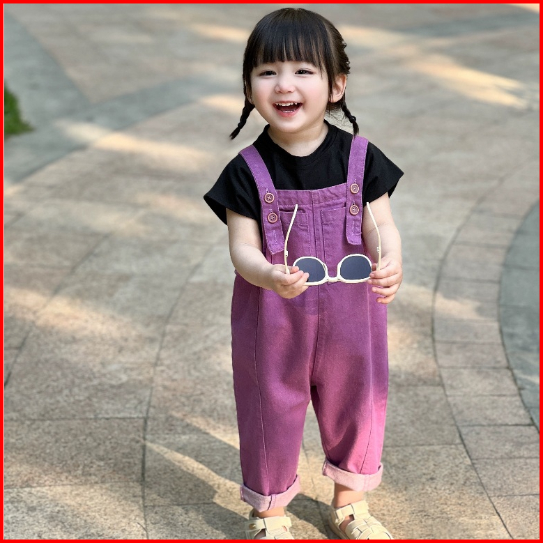 Kingogo Style Terbaru Setelan Anak Perempuan Setelan Overall Warna Hitam Lengan Pendek Ungu Celena Kaki Lebar Panjang Je