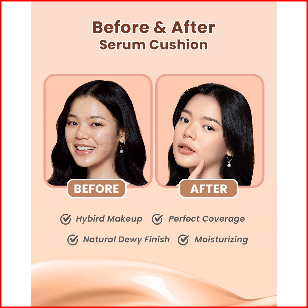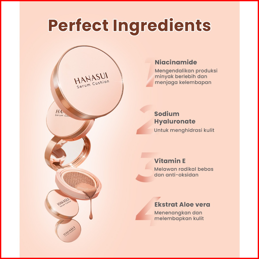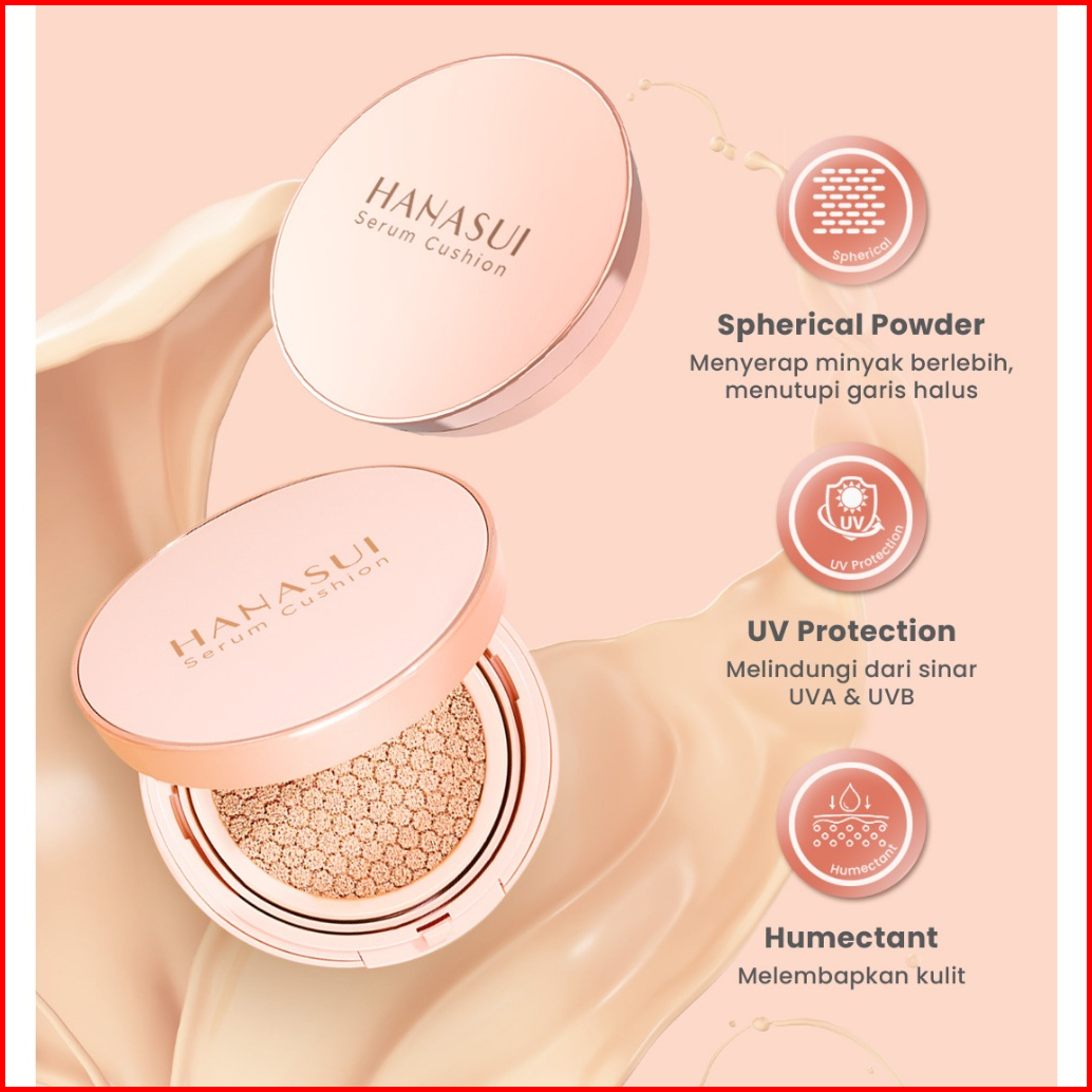 Hanasui Serum Cushion Flawless Natural Dewy Finish Uva Uvb Protection Perfect Coverage Menyamarkan Pori-pori Garis Halus