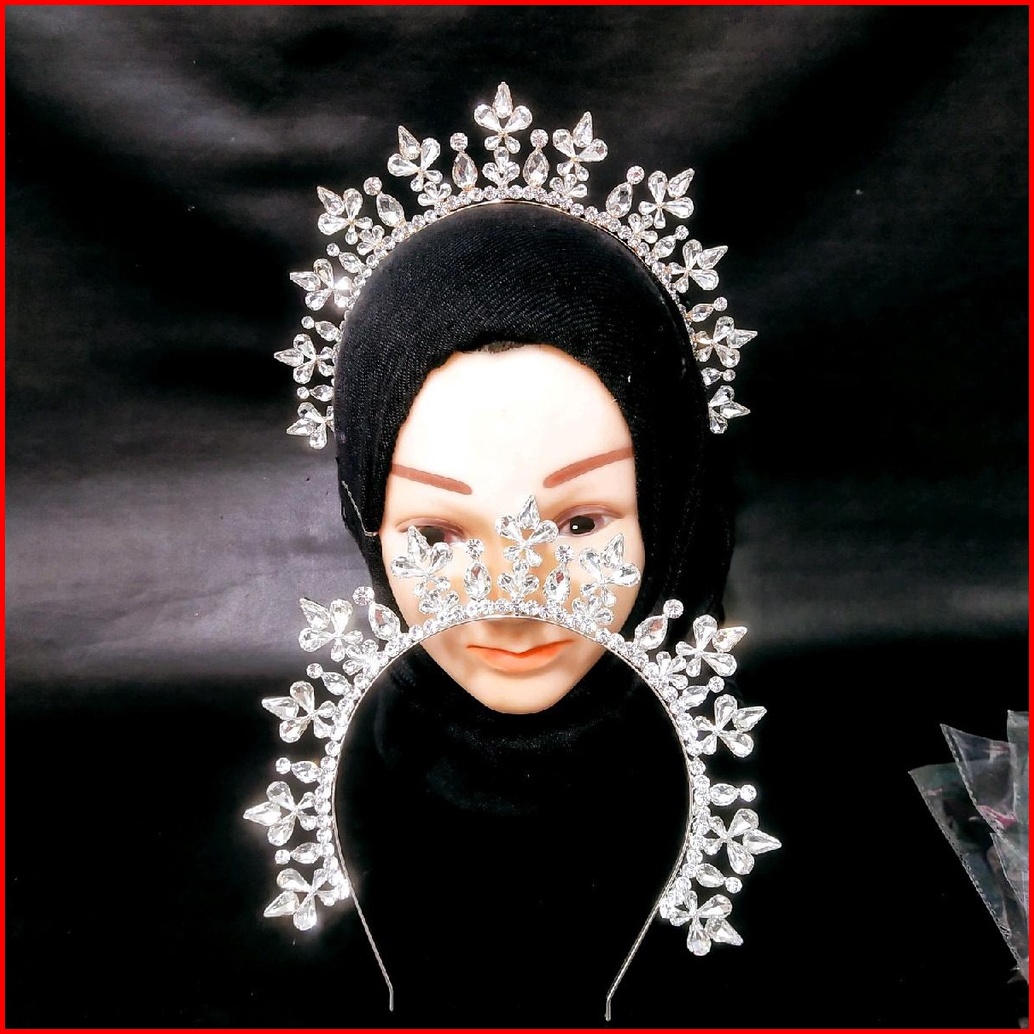 Mk101 Crown Mahkota Pengantin Permata Kilap Panjang Sampai Telinga