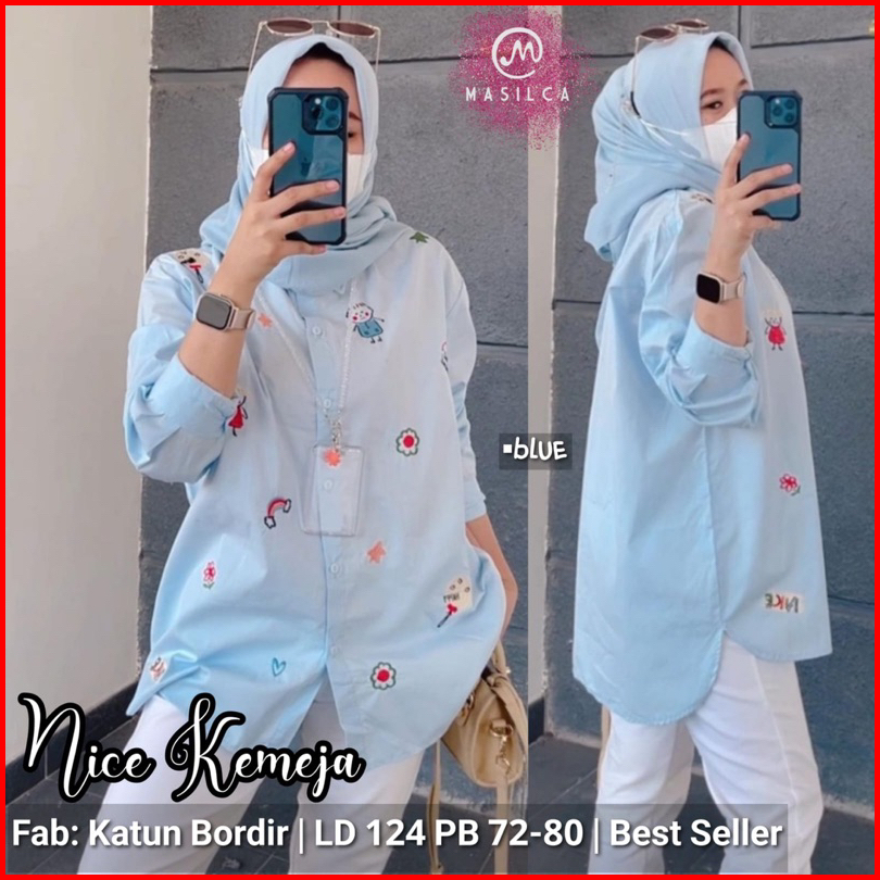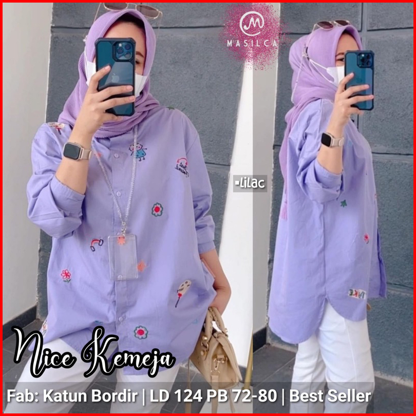 Nice Kemeja By Masilca. Kemeja Jumbo Shirt Oversize Katun Motif Bordir Adem Mewah