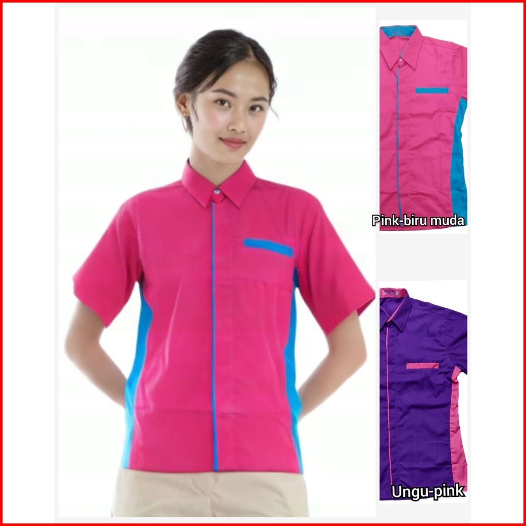 Seragam Karyawan Pink Wanita Seragam Kerja Kemeja Drill Warna Pink