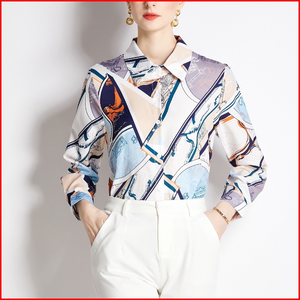 New Korean Fashion Pink Blue Chiffon Soft Fabric Long Sleeve Women Shirts Atasan Kemeja Pendek Wanita Kasual Lengan Panj