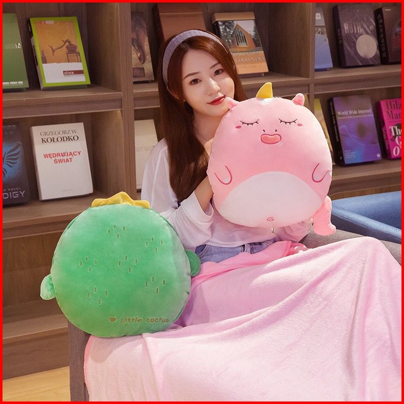 Kks B018 Bantal Selimut 3in1 Boneka Balmut Karakter Avocado Penguin Dino Dengan Penghangat Tangan