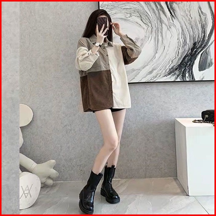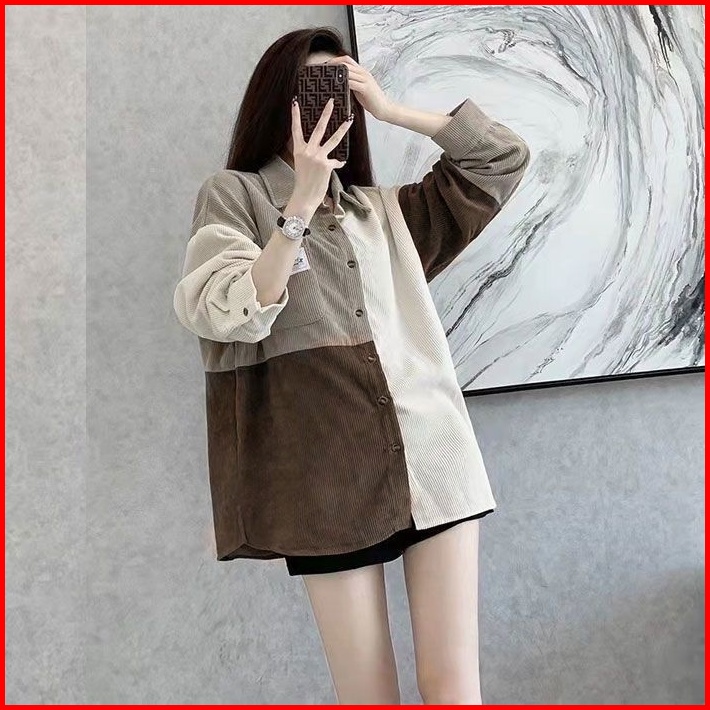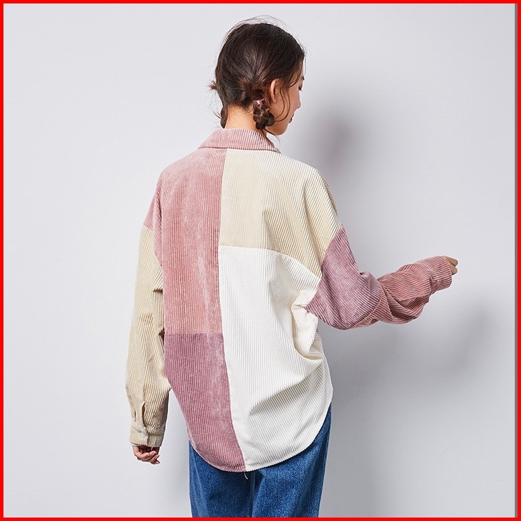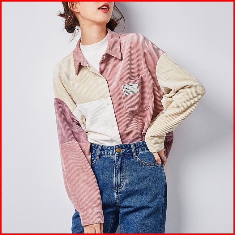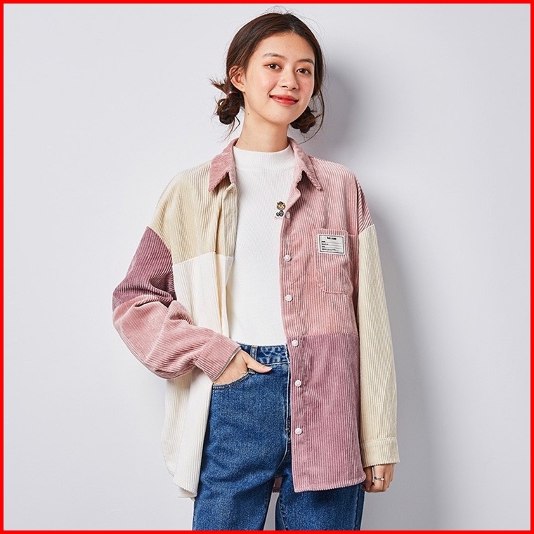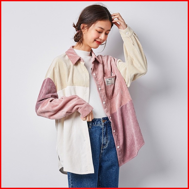 Meet.u Kemeja Korduroi Retro Wanita Yang Serasi Dengan Warna Pink Baju Atas Lengan Panjang Kasual