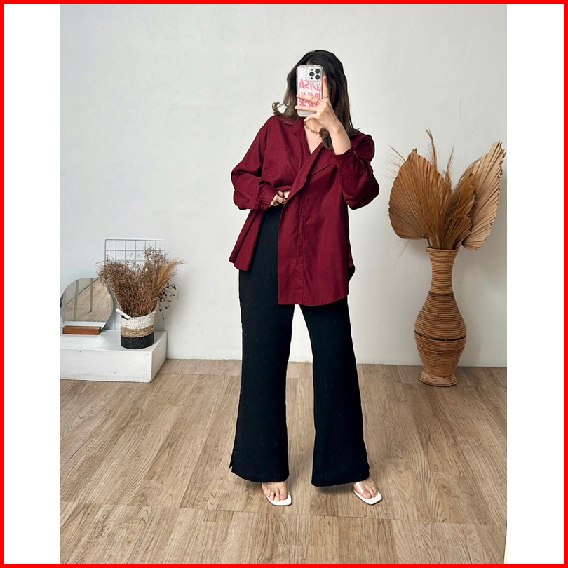 Moe Longshirt Fashion Kemeja Basic Oversized Atasan Lengan Panjang Blouse Wanita Atasan Wanita Outer Nyaman Kemeja Kanto