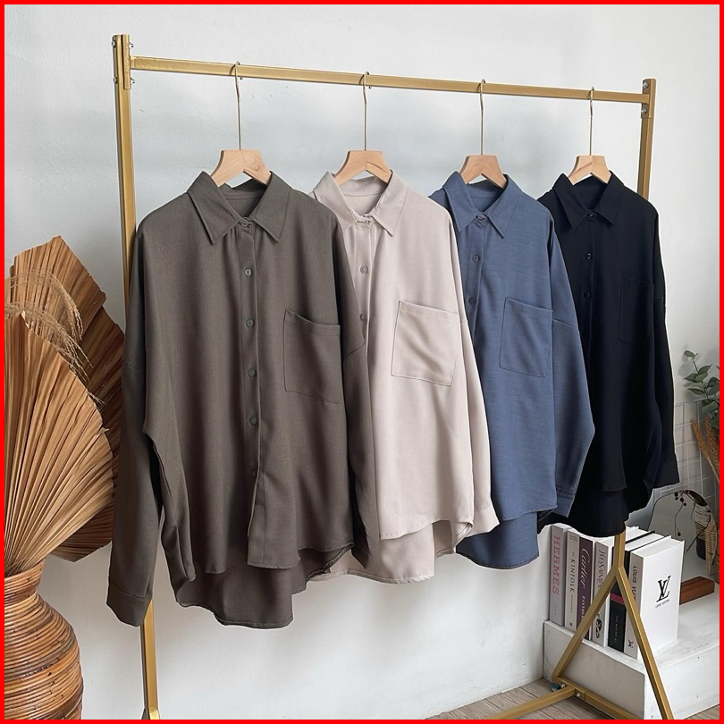 Darya Oversized Shirt Fashion Kemeja Basic Oversized Atasan Lengan Panjang Blouse Wanita Atasan Wanita Outer Nyaman Keme